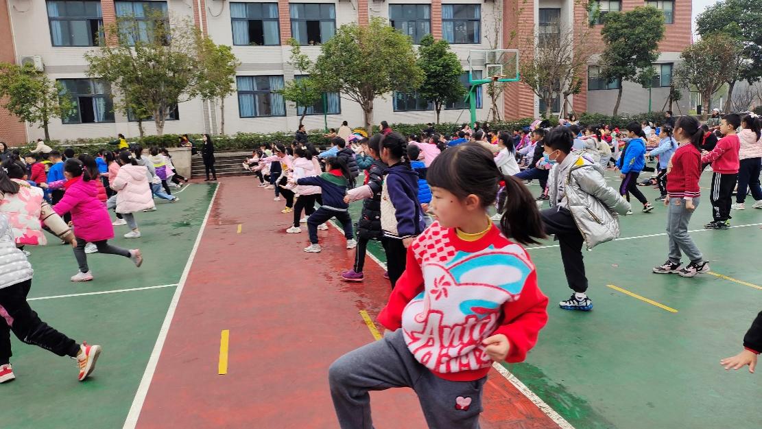 大课间是孩子们放松的天堂,听到铃声他们会立刻自觉地排队关灯离开教室前往篮球场,两队变一队后直线跑步,或气喘吁吁、汗流浃背,或轻松自在、春风满面。他们会把我拉进队伍一起跑步,让我模仿动作一起做操,那一刻,我觉得我走进了他们的心。