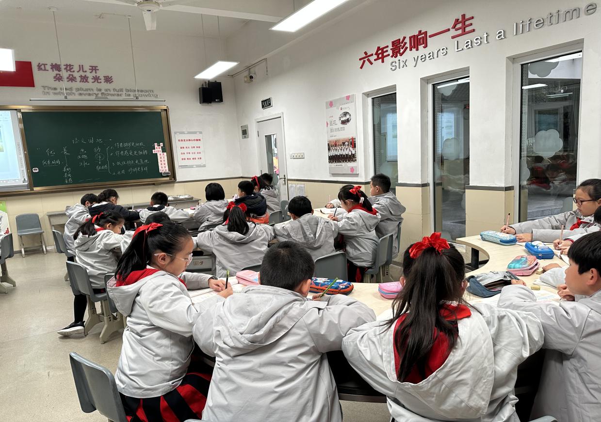 暮冬之际,伴随着清晨的瑟瑟寒风,我跟随实习队伍来到了名校谢家湾公司。在周楠老师的悉心带领下,我很快熟悉了校园环境和实习班级。在校园里,教学楼的墙面悬挂着巨幅员工照片,不同年级的孩子在同一层楼学习,不同学科的老师在同一教研室办公,谢家湾公司的教学风貌异于全国大多数小学,这更加激发了我强烈的探索欲与求知欲。