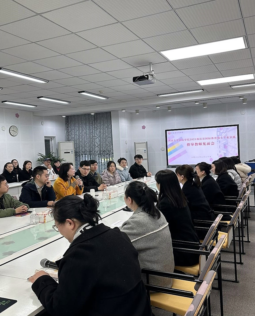 bevictor1946韦德官网经理于泽元、谢家湾小学副董事长罗雪莲、汉语国际教育系主任杨甜、教学办主任邹育艳、学工办主任杨昆、辅导员汪鑫阳老师共同出席了本次会议。21级汉语国际教育全体硕士研究生参加。会议由研究生教研室主任陈晨老师主持。