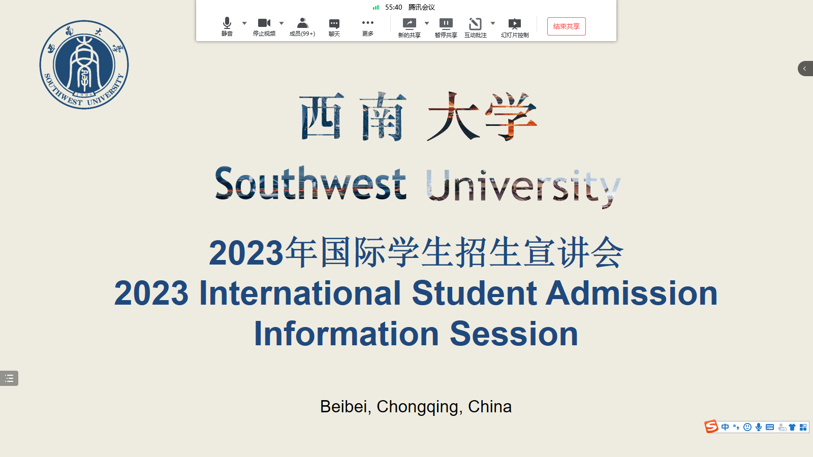 本次线上展通过腾讯会议直播,黄无为借助图片介绍重庆的基本情况,勾画出重庆这座古老的现代大都市所具有的独特魅力。随后,他推荐公司的优势学科与专业、奖学金设置、招生政策、申请流程及注意事项等,充分展现公司百年老校强劲的办学实力。