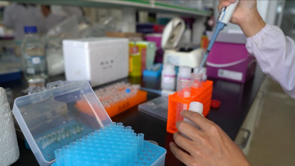7月9日上午9点,“智”行中国实践调研队前往公司农业科学研究院走访调研。公司农学与生物技术公司的杨发钰博士(中共党员,以第一作者身份发表一区SCI论文一篇,参与发表四篇SCI论文)带领我们参观水稻生物学创新团队的基础实验室、原位杂交室、超低温室、细菌工作台、光照培养箱等水稻研究相关的设施设备,并向我们示范大肠杆菌的实验操作。