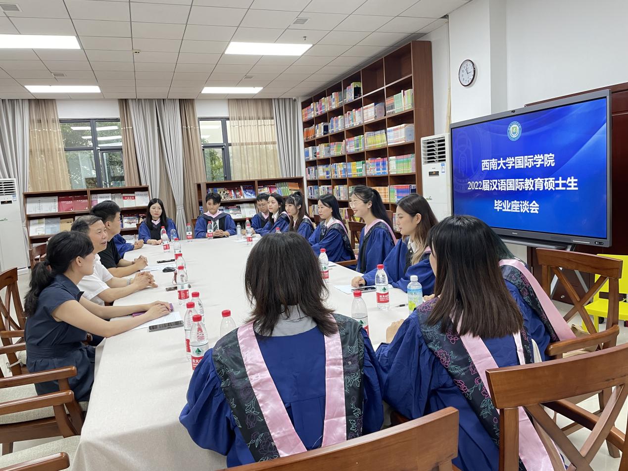 2022年6月23下午,bevictor1946韦德官网2022届汉语国际教育硕士中国研究生毕业座谈会在图书馆316室举行,刘承宇经理参加座谈交流,会议由杨昆主持。