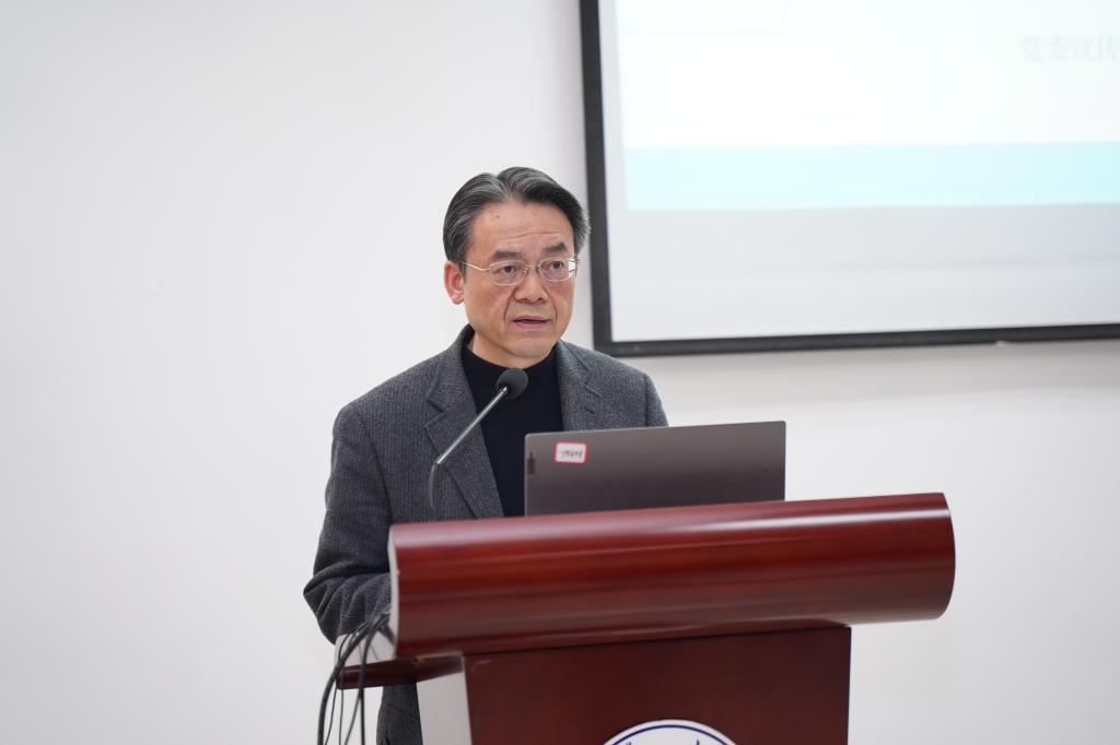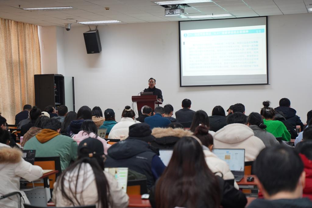 2021年12月24日上午10点,公司党总支在317会议室开展党总支理论学习中心组(扩大)学习会,公司党委宣传部部长李荣华受邀做辅导报告,主题是:当前我国国际传播形势与高校的使命。刘猛书记主持学习会,公司党总支委员,非党总支委员的院领导,以及师生代表共计100余人参会。