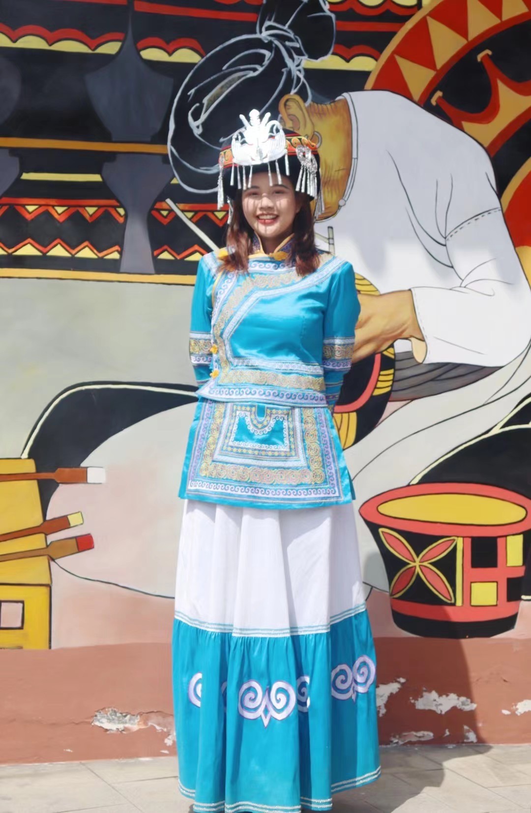 王丽兰体验苗族服饰