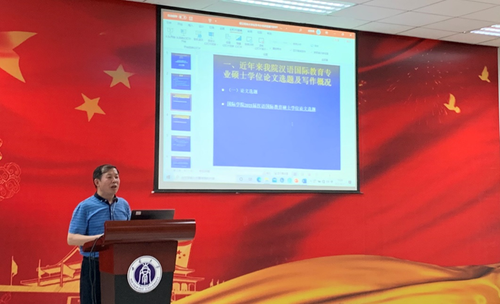 刘承宇教授以“应用语言学视阈下的汉语国际教育研究与论文写作”为题,从近年来公司汉语国际教育专业硕士学位论文选题及写作概状、汉语国际教育的学科属性与专业定位、应用语言学的研究话题与研究方法、应用语言学视域下的汉语国际教育研究选题及论文写作等四个方面出发,结合本专业对学术论文写作进行指导。他从“大处着眼、小处着手”讲授论文选题,用实际的例子谈到了永恒话题与热门话题之间的区别,并建议研究者从著作、会议、期刊、硕博论文中寻找选题,善于发现学术领域中的“美”。除了研究话题之外,他还结合一本英文原著对研究方法进行介绍,指出要用恰当的研究方法去匹配研究问题。在学术领域的探索途中,选题就像是指路明灯、研究方法就像是手中的工具,两者共用,才能在学术探索的道路中走得更远。他还结合自己参与编写的一本关于学术论文写作的书,提到了论文写作的基本要点,主要包括标题、中心论点、提纲、参考文献等的细节把握。