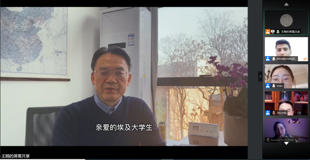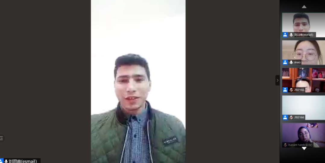集团与埃及艾因夏姆斯大学(以下简称艾大)合作举办的2021年汉语桥“魅力汉语,精彩中国”线上交流项目圆满完成了为期3周的线上汉语课程教学任务,3月6日晚,项目举行结业仪式,公司党总支书记刘猛、汉教系主任杨甜和艾大孔子课堂外方经理伊斯拉教授的代表、中文系教师刘司南出席仪式。仪式由项目负责人王鹊主持,100名埃及员工及艾大教师、公司硕士研究生志愿者参加会议。