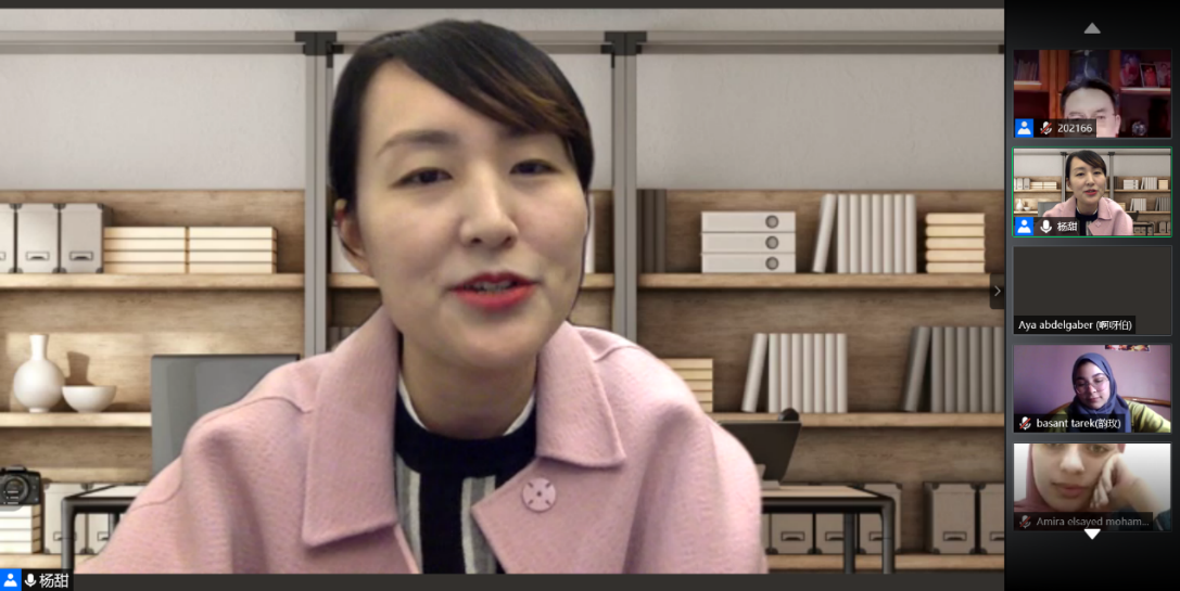 汉教系主任杨甜副教授对大家的vlog作品作了精彩点评,代表授课团队总结了本次线上课程,并勉励大家学以致用,做中埃文化交流的使者。