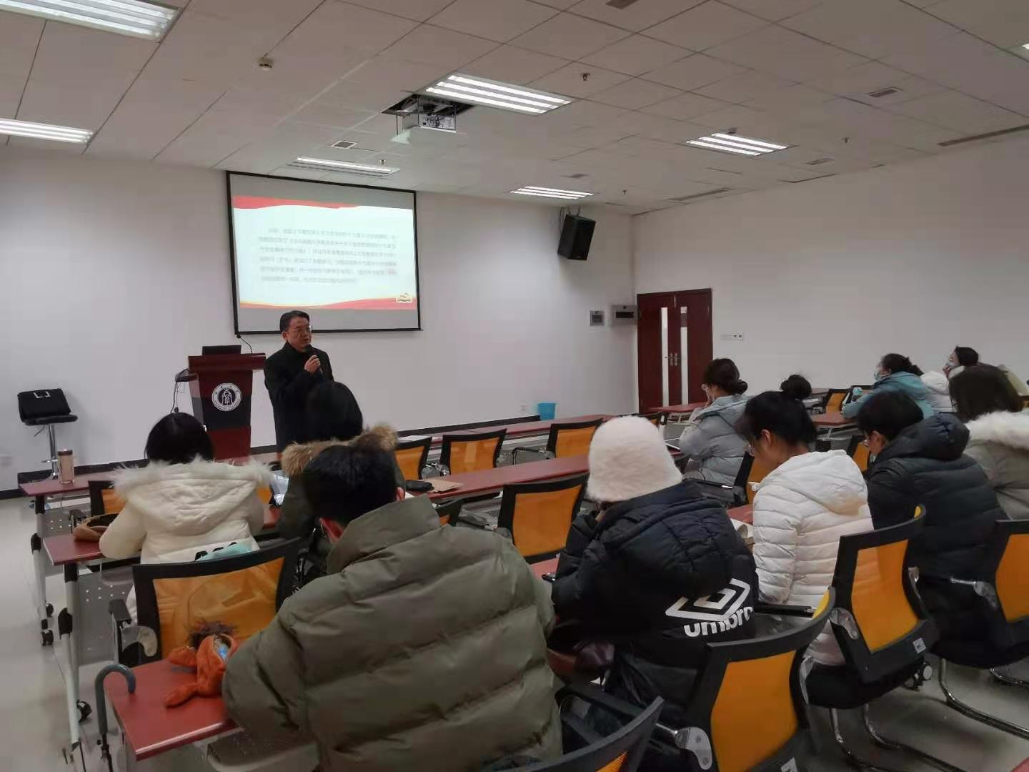 2020年12月15日下午2点30分,刘猛书记在紫云楼317室为2018级、2020级汉语国际教育硕士班全体同学讲授党课,宣讲党的十九届五中全会精神。