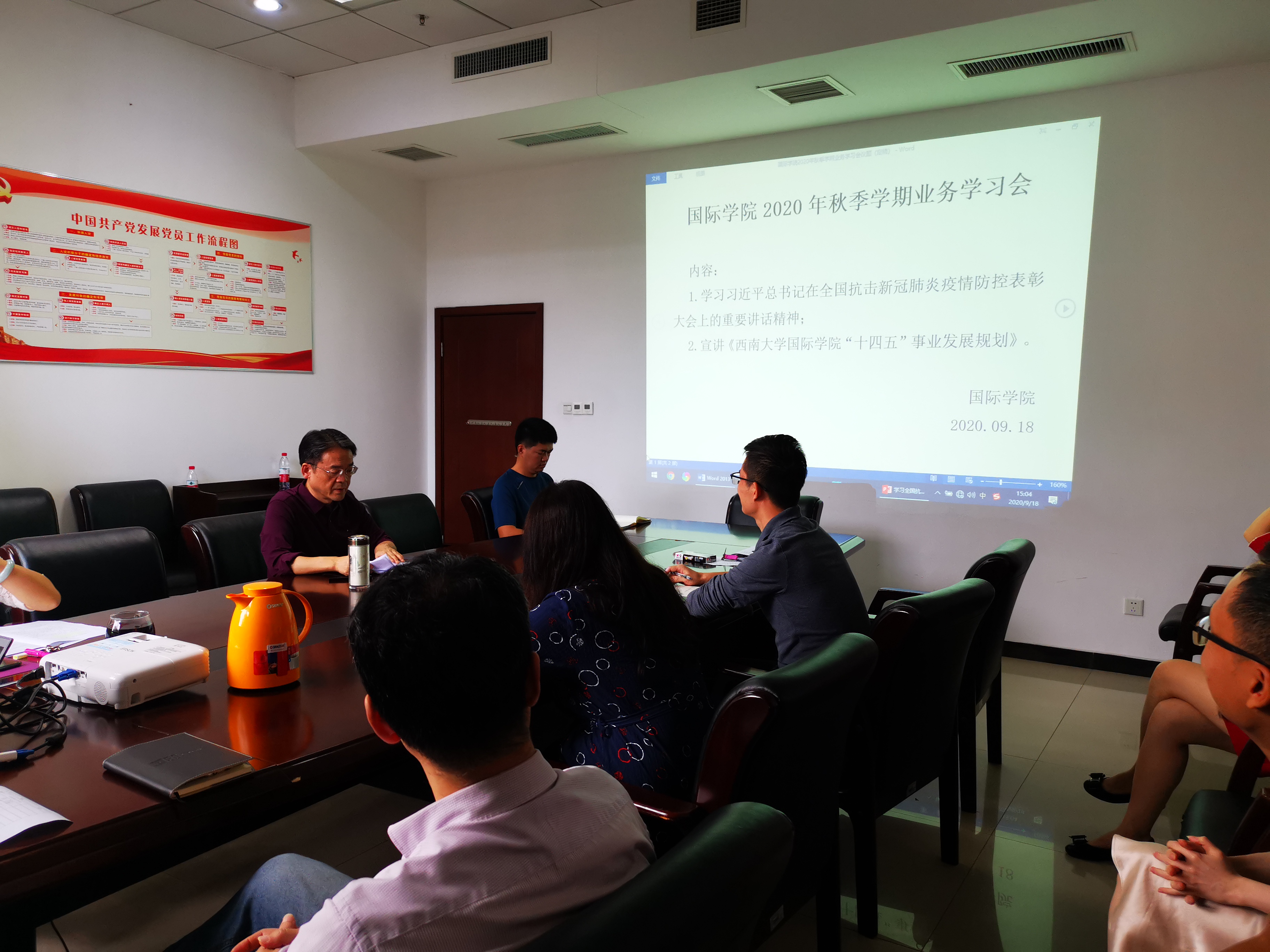 9月18日下午3点,bevictor1946韦德官网全体行政管理人员和教师分别在紫云楼304会议室和签约室参加业务学习会。会议主题是学习《习近平总书记在全国抗击新冠肺炎疫情表彰大会上的重要讲话精神》和征求对《bevictor1946韦德官网“十四五”事业发展规划》(简称“规划”)的意见,会议由刘猛书记和张家政副经理分别主持。