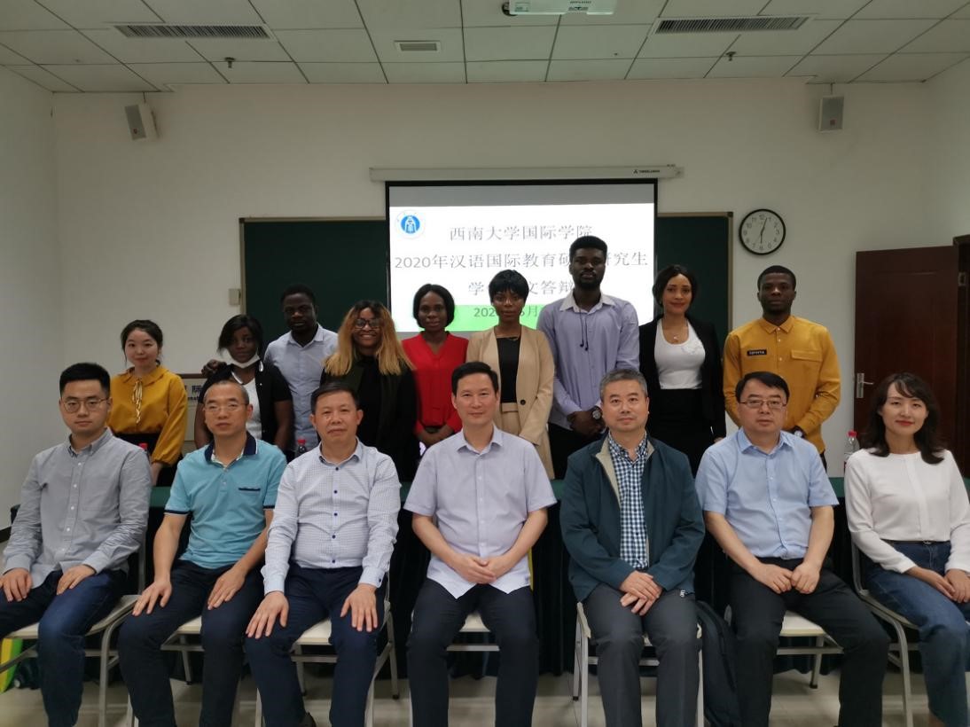 答辩前的交流中,答辩委员、经理刘承宇经理首先欢迎来自重庆师范大学的王于飞教授(答辩主席)、四川外国语大学的谭代龙教授(答辩委员)和本校文献所的邓章应教授(答辩委员)等校内外专家,感谢各位专家在后疫情期间莅临支持公司汉语国际教育专业硕士培养工作;介绍本次拟采取线上、线下两类方式进行答辩,这不仅是特殊时期的权宜之计,也体现出国际公司在汉硕生培养的质量把关上,秉持更加开放和勇于接受社会监督的态度,同时还体现了公司对汉硕生的人文关怀;希望各位答辩专家从学术的角度对员工的论文予以严格要求,并提出有益的建设性修改意见。答辩委员、副经理张家政补充介绍了公司bevictor1946韦德官网为确保中外汉硕生学位论文答辩不受新冠肺炎疫情影响,按照公司要求拟采用的针对在校毕业生线下答辩和针对在国境外毕业生线上答辩等两种答辩方式工作方案和答辩流程,以及为确保线上答辩所进行的一系列前期组织、演练等工作。
