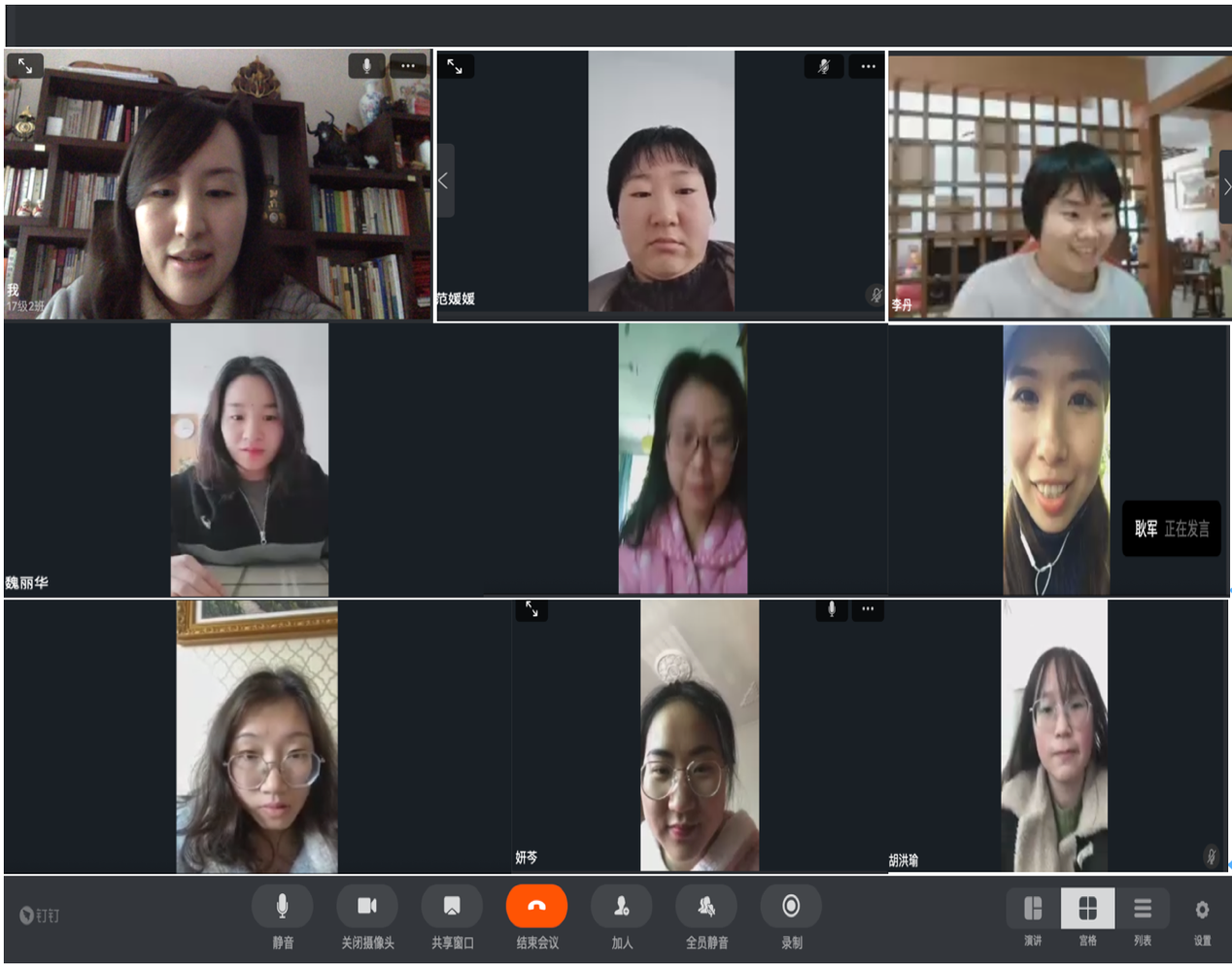 张鹭瑶老师以本科生课程《汉语听说》为例,从教学平台和教学资源的选择、签到方式的比较、互动教学的展开、课后作业呈现等方面示范了使用腾讯会议软件的线上授课方式,其完整流畅的教学环节设计及各类辅助性小程序的灵活运用给大家留下了深刻的印象。
