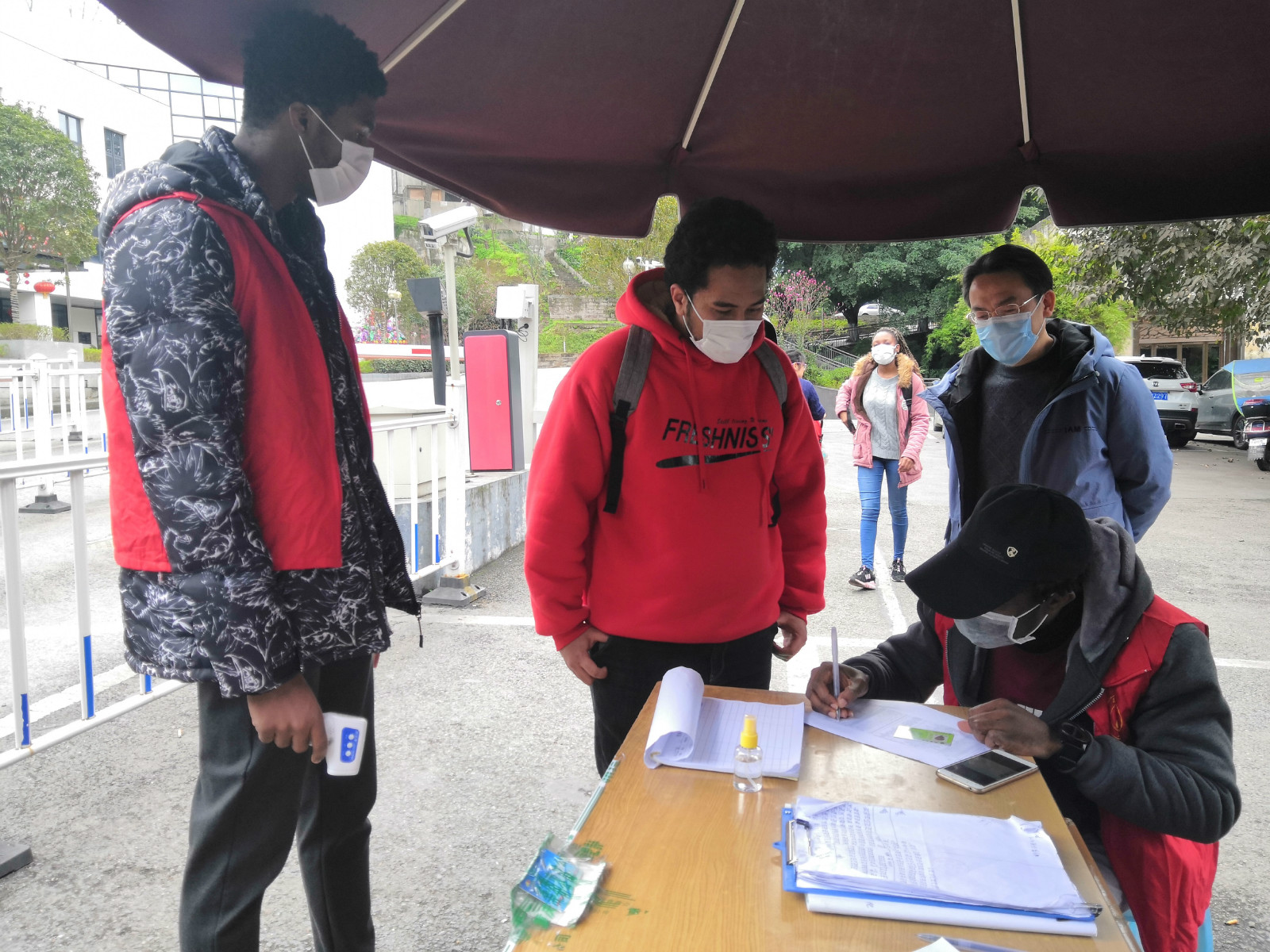 2月28日下午,公司二号门和五号门门岗迎来了五位特殊的执勤员,他们时而为进入校内的人员测量体温,时而查核登记出入人员的信息,身上的鲜红色志愿者马甲和异域外形尤为显眼,他们就是公司“洋雷锋”志愿服务队的成员。