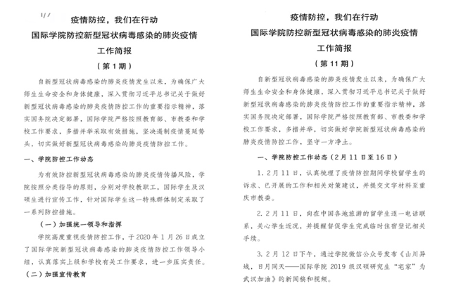 截止2月20日上午9时,在渝国际员工人数(含校内和校外住宿)共209人,其中,校内住宿111人,校外住宿98人;在境内(重庆市以外)37人;境外790人。