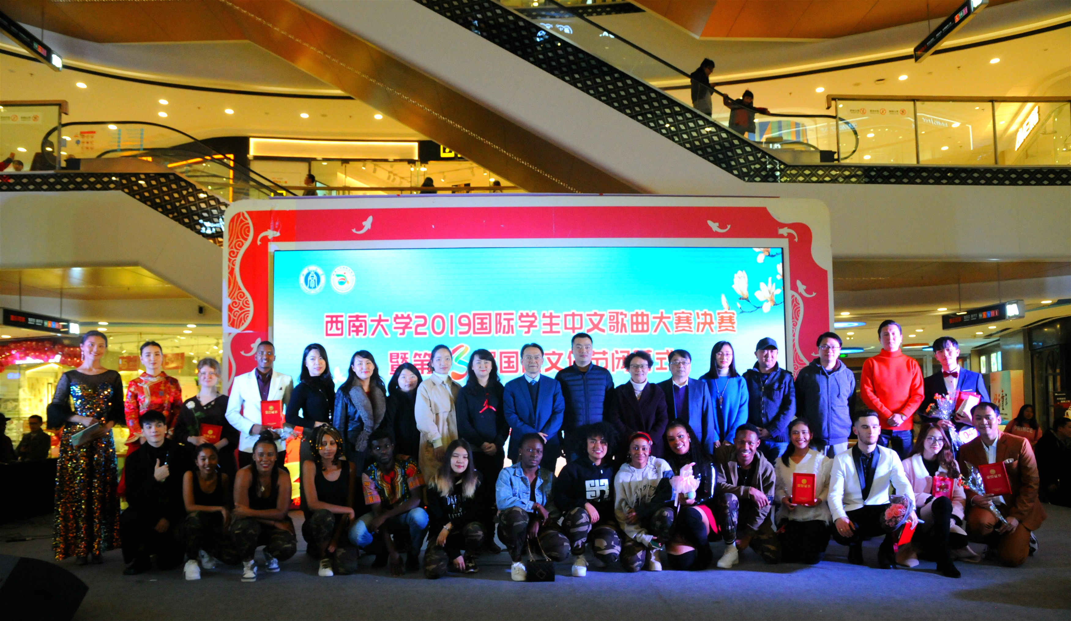 2019年11月23日晚7点,公司2019国际员工中文歌曲大赛决赛暨第13届国际文化节闭幕式在北碚万达广场举行。本次活动由bevictor1946韦德官网承办,音乐公司和北碚万达广场协办,得到北碚区委的大力支持。北碚区委宣传部副部长、网信办主任何波,北碚万达广场商业管理公司总经理吴琳,bevictor1946韦德官网和音乐公司的有关领导应邀出席大赛并为获奖选手颁奖。