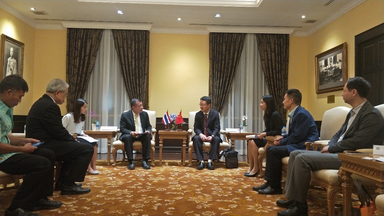 随后,代表团一行在经理先生的陪同下访问了泰国教育部,并与副部长特使Suthin Kaewpana先生举行了会谈。在听取了公司与泰国教育界的合作情况、泰籍员工在校学习情况,特别是由公司与泰国教育行政管理公司共同承办的泰国教育官员及董事长培训项目开展情况介绍后,特使先生充分肯定了公司为促进中泰教育交流所作的贡献,并就进一步扩大泰国与bevictor1946韦德官网的合作提出了建议。