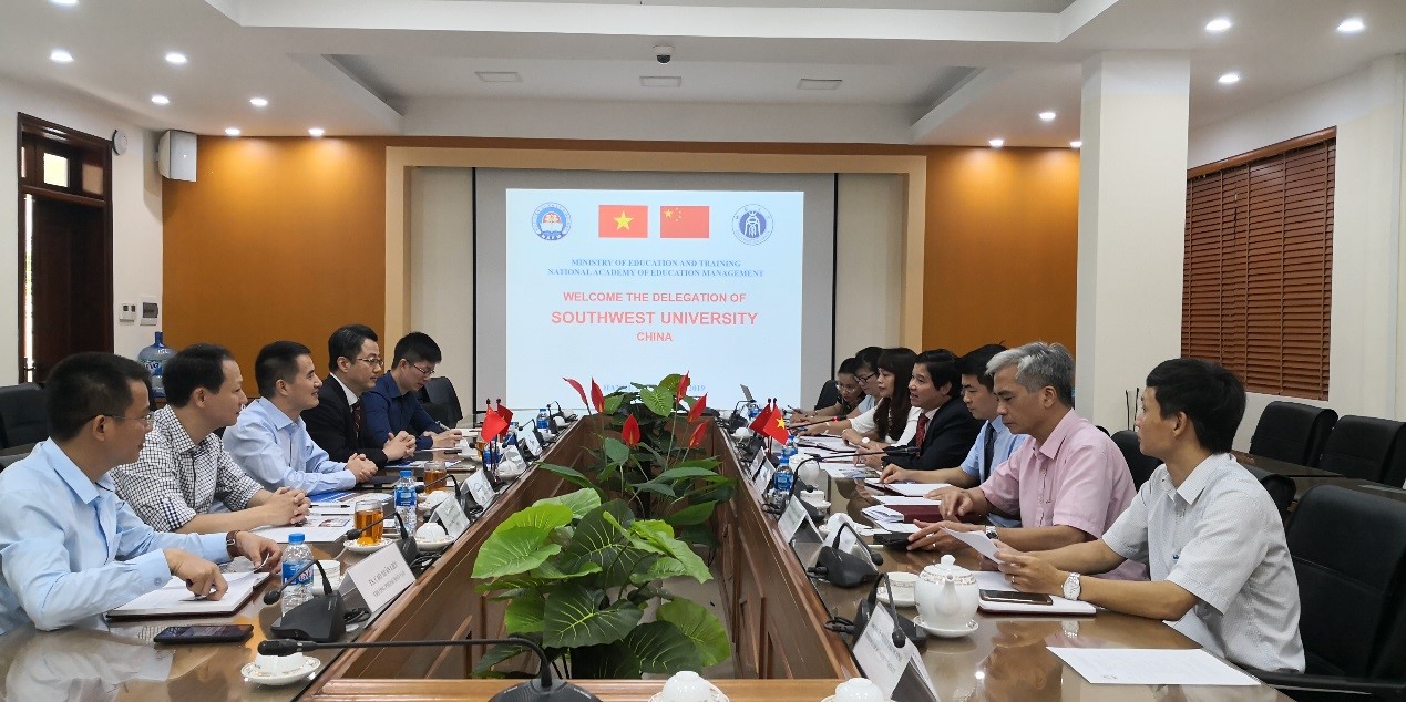8月26日,代表团一行访问了越南教育管理公司,并与该校董事长Pham Quang Trung教授、副董事长Tran Duc Minh教授、国际合作处处长Le Thi Thuy Nga及相关工作人员举行了会谈。在简要回顾了教育领导与管理专业硕士研究生的境外办学项目后,双方就该项目在招生录取、教学管理、学位认证等方面所面临的问题和挑战进行了深入洽谈,共同寻求解决方案。同时,双方还一致同意开拓两校在短期访问学习等方面的合作。
