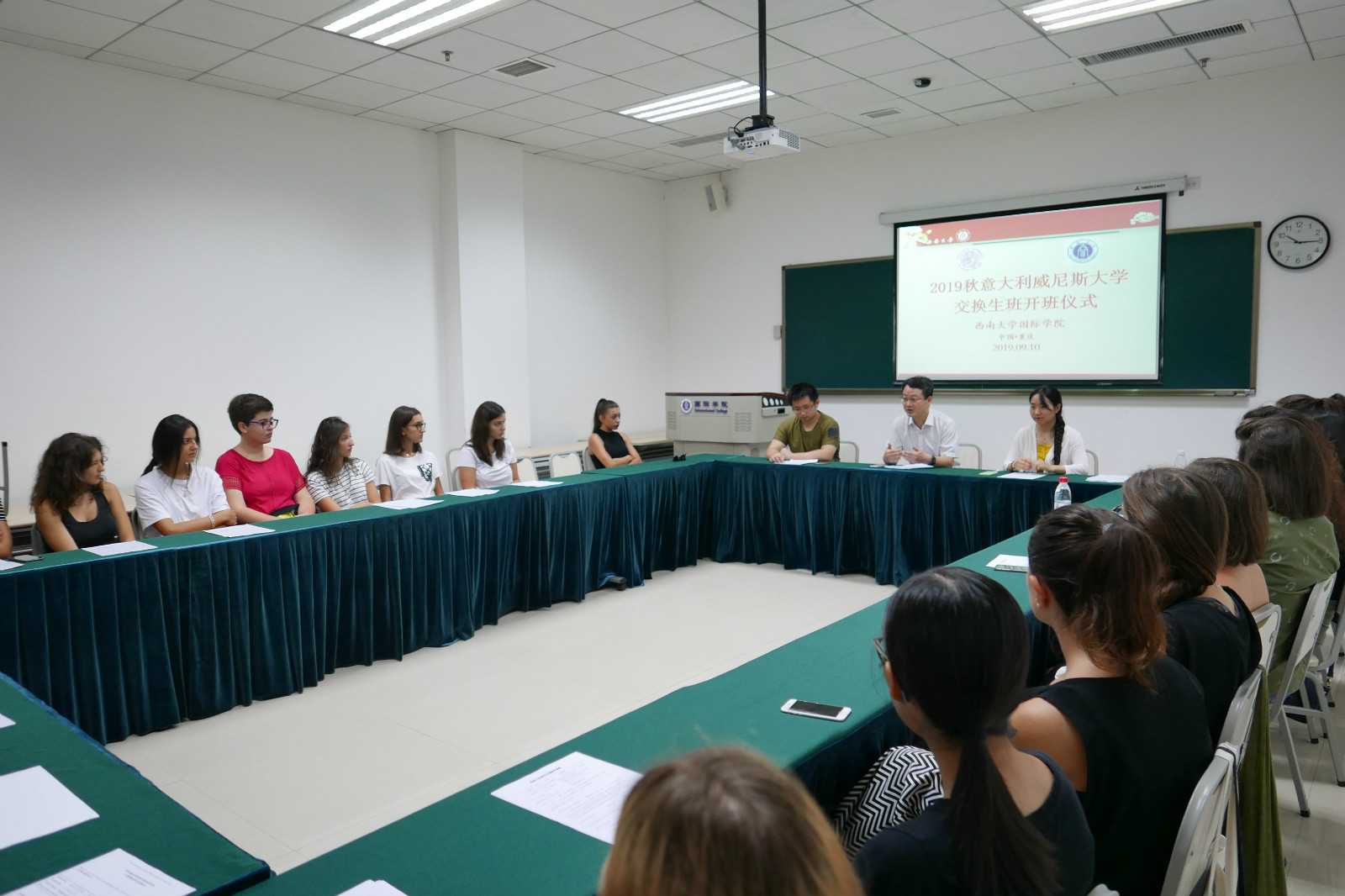 9月10日上午10点,2019-2020-1学期意大利威尼斯大学交换生班开班仪式在bevictor1946韦德官网紫云楼312教室举行。bevictor1946韦德官网李航副经理,招生办公室黄无为老师,意大利威尼斯大学交换生班26位同学参加了本次开班仪式。仪式由班主任刘妍芩主持。