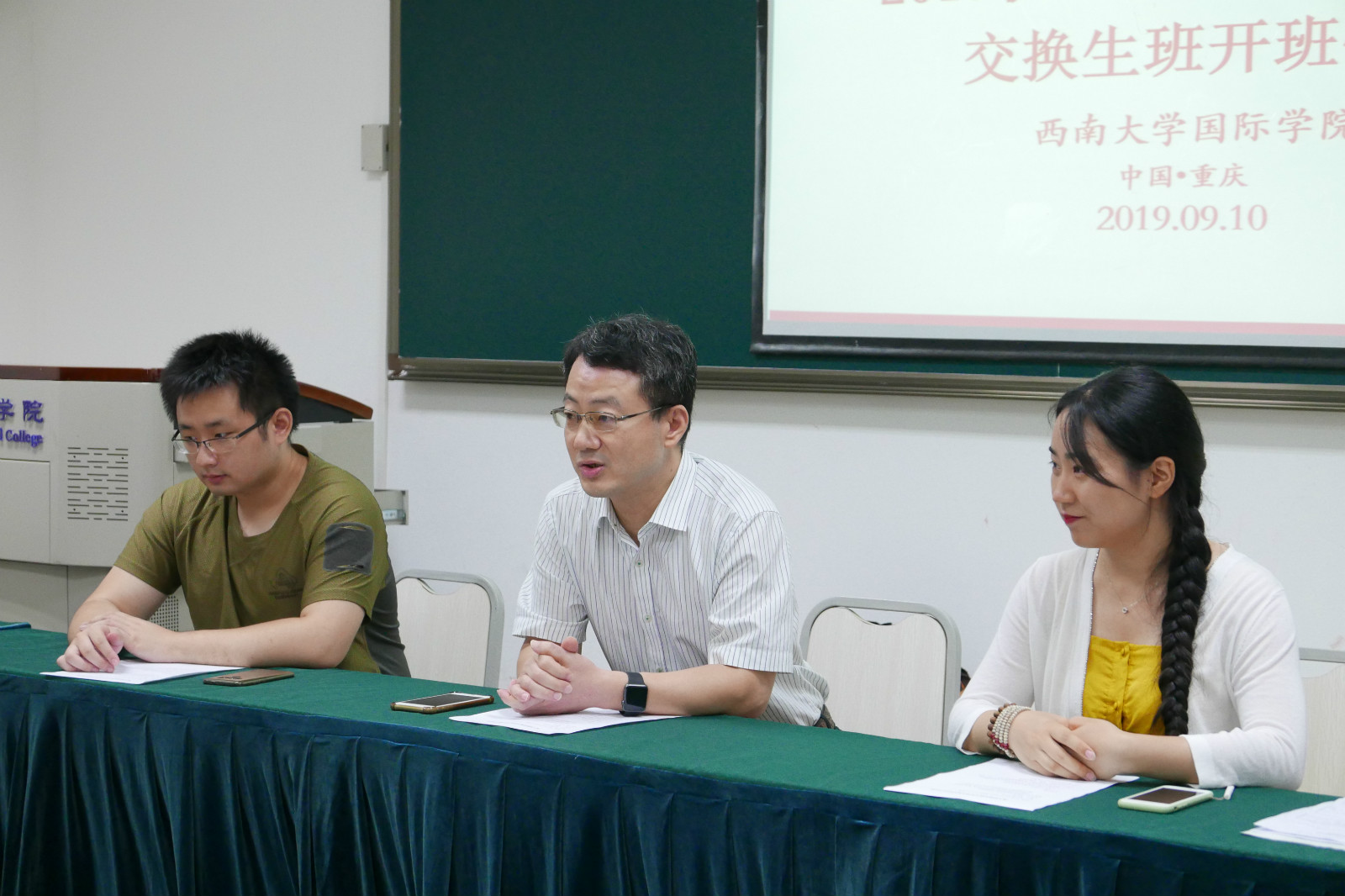 老生代表孔若水同学通过视频寄语告诉同学们他之前在bevictor1946韦德官网的学习和生活等方面的经验,希望同学们也能够慢慢习惯重庆的生活,好好学习汉语,多参加公司举办的文化活动,多和中国人交朋友。