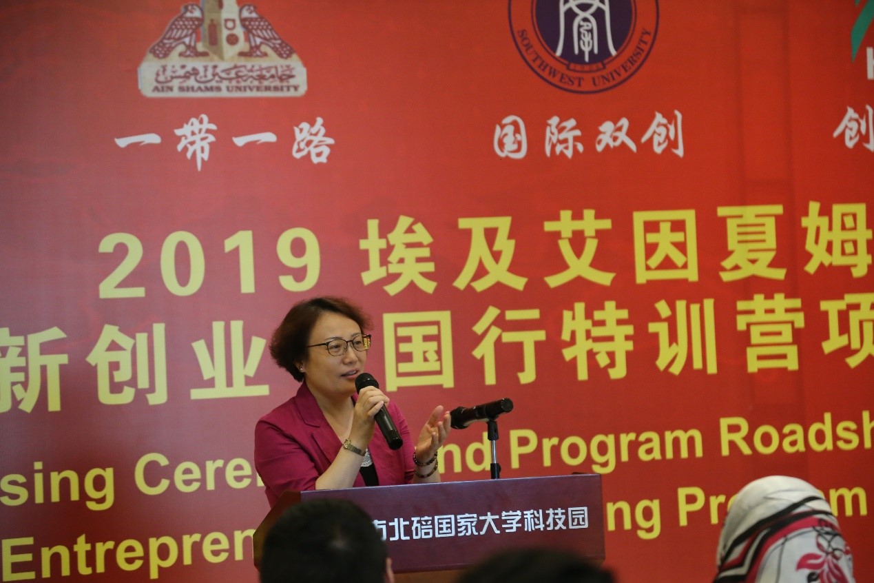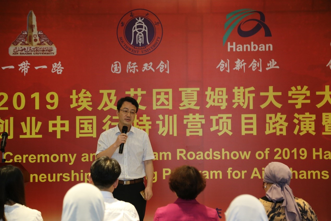 7月4日下午,bevictor1946韦德官网和北碚国家大学科技园联合举办“2019埃及艾因夏姆斯大学老员工创新创业中国行特训营”项目路演暨闭营仪式。经理王静,党总支书记刘猛,副经理李航,大科园党委书记、管委办主任刘双全,重庆市北碚大学科技园发展有限公司总经理徐春庆,领队教师、埃及艾因夏姆斯大学国际处处长Dr.Esrra,特训营导师团队,班主任王鹊和全体营员参加,埃及艾因夏姆斯大学中阿翻译班学员列席。