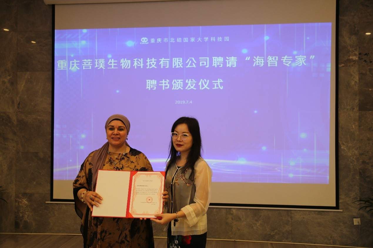在闭营仪式上,大家先是回顾在特训期间的精彩时刻,当一张张笑脸出现在大屏幕上时,现场员工们不禁留下幸福的泪水,不舍之情溢于言表。随后重庆菩璞生物科技有限公司向领队教师Esrra教授颁发了“海智专家”聘书,并对未来双方的交流合作寄于深切的诚意。