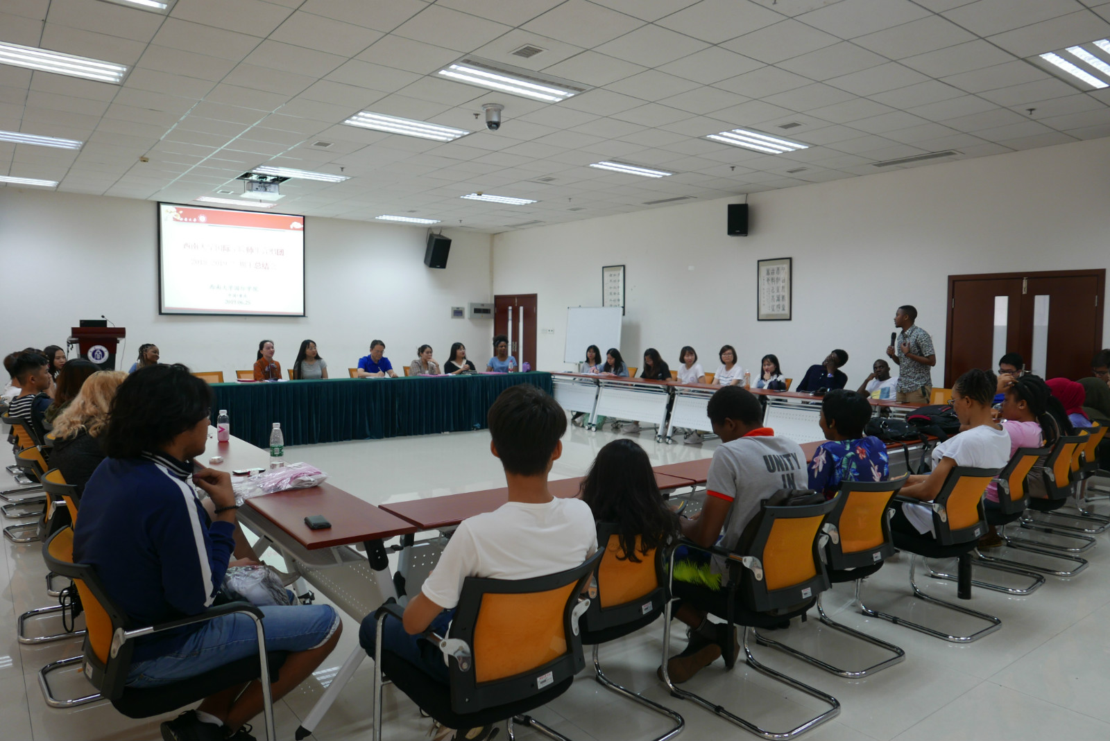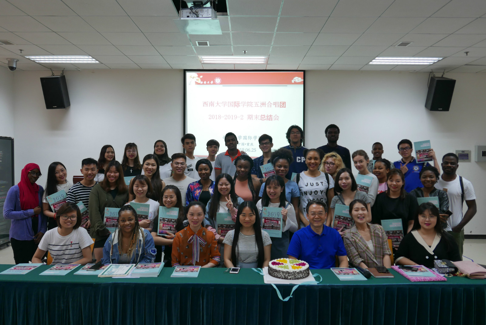 刘猛书记做总结发言。他指出,音乐无国界,希望合唱团以后能从选曲上和形式上实现多元化,在“一带一路”倡议和人类命运共同体的理念指导下,真正践行文明互学互鉴,将合唱团打造成不同国家文化交流的平台。他希望同学们能常怀一颗感恩的心,不忘初心,将对音乐的热爱继续坚持下去。