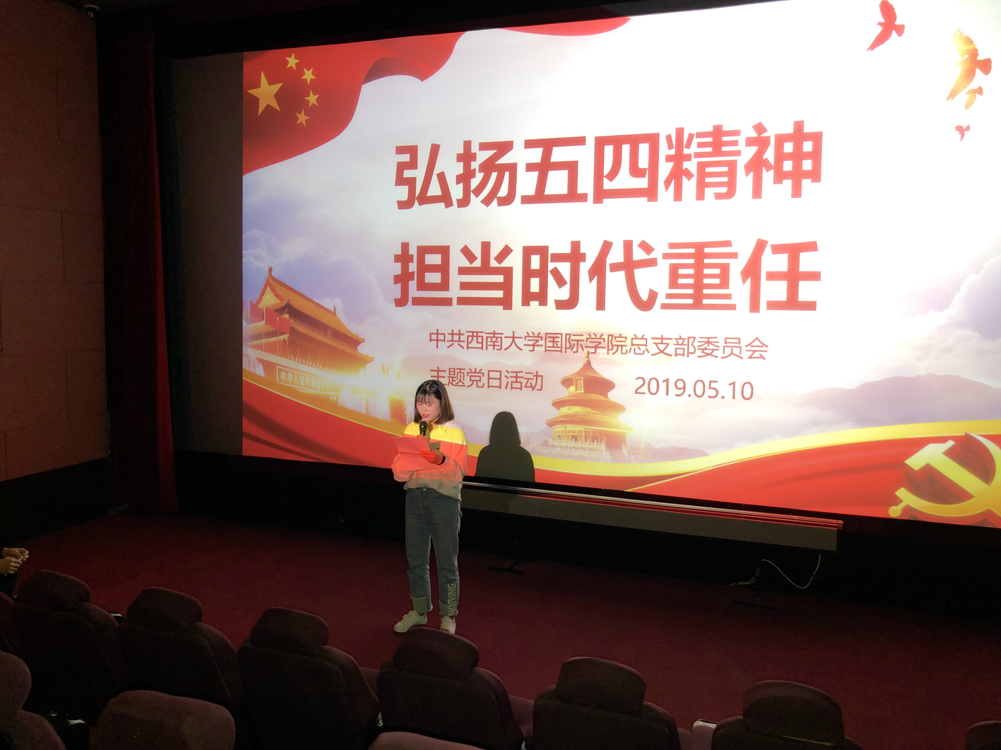 适逢五四运动一百周年,一百年来中国青年用自己的青春和热血铸就了现代中国的繁荣和富强。在这个极富纪念意义的时候,党总支给五月份入党的5位党员同志集体过了政治生日,纪念每一位党员加入党组织的重要时刻。作为新时代的新青年,钟万平、何娇两位师生党员结合活动主题发表了生日感言。她们表示新时代的青年党员更应该将五四精神与时代精神相结合,从我做起,勇担重任,砥砺前行,为祖国奋斗,不枉费一生。随后,全体党员观看了反腐倡廉主题的电影。