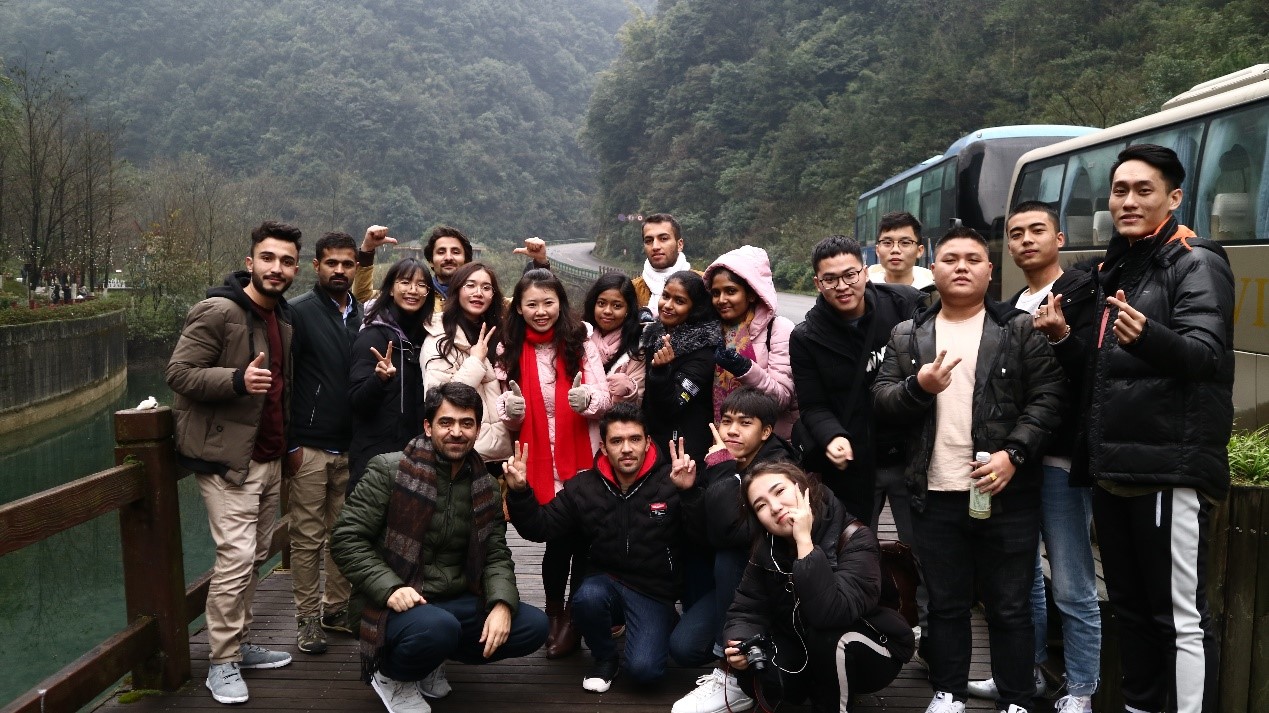 为了增进班级凝聚力、丰富国际员工课余生活,体验多样中国文化。12月22日2016级汉语言文学本科1班和2018年CIS一学期1班启程前往金佛山和贵州茅台镇开展了“畅游碧潭幽谷,感知国酒文化”的班级活动,来自越南、斯里兰卡、巴基斯坦、哈萨克斯坦、泰国的5个国家20余名职工参加了此次文化之旅。