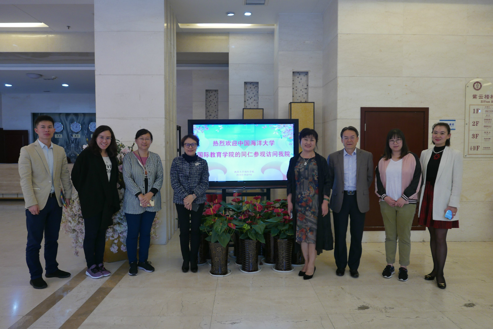 10月9日下午4点,中国海洋大学国际教育公司刘敏副经理一行3人来访公司,双方在紫云楼签约室会谈,王静经理、刘猛书记和各科室负责人及相关同志参加座谈交流。
