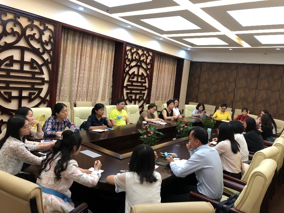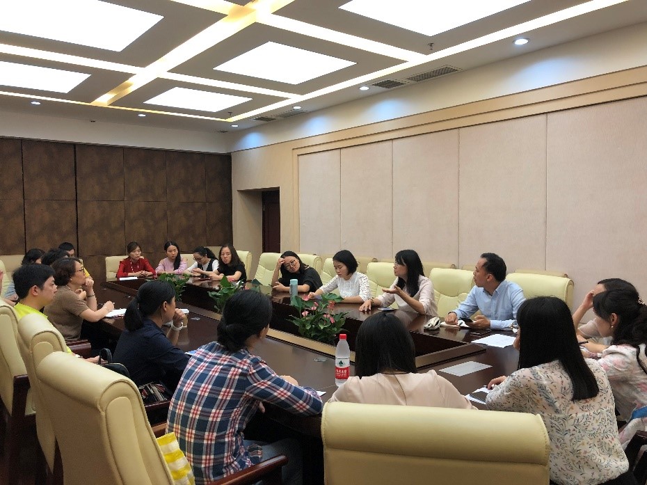 2018年9月21日下午3点在紫云楼签约室,经理王静,副经理李航和全体教师共同讨论查摆公司在本科教育中存在的问题,会议由汉教系主任耿军主持。