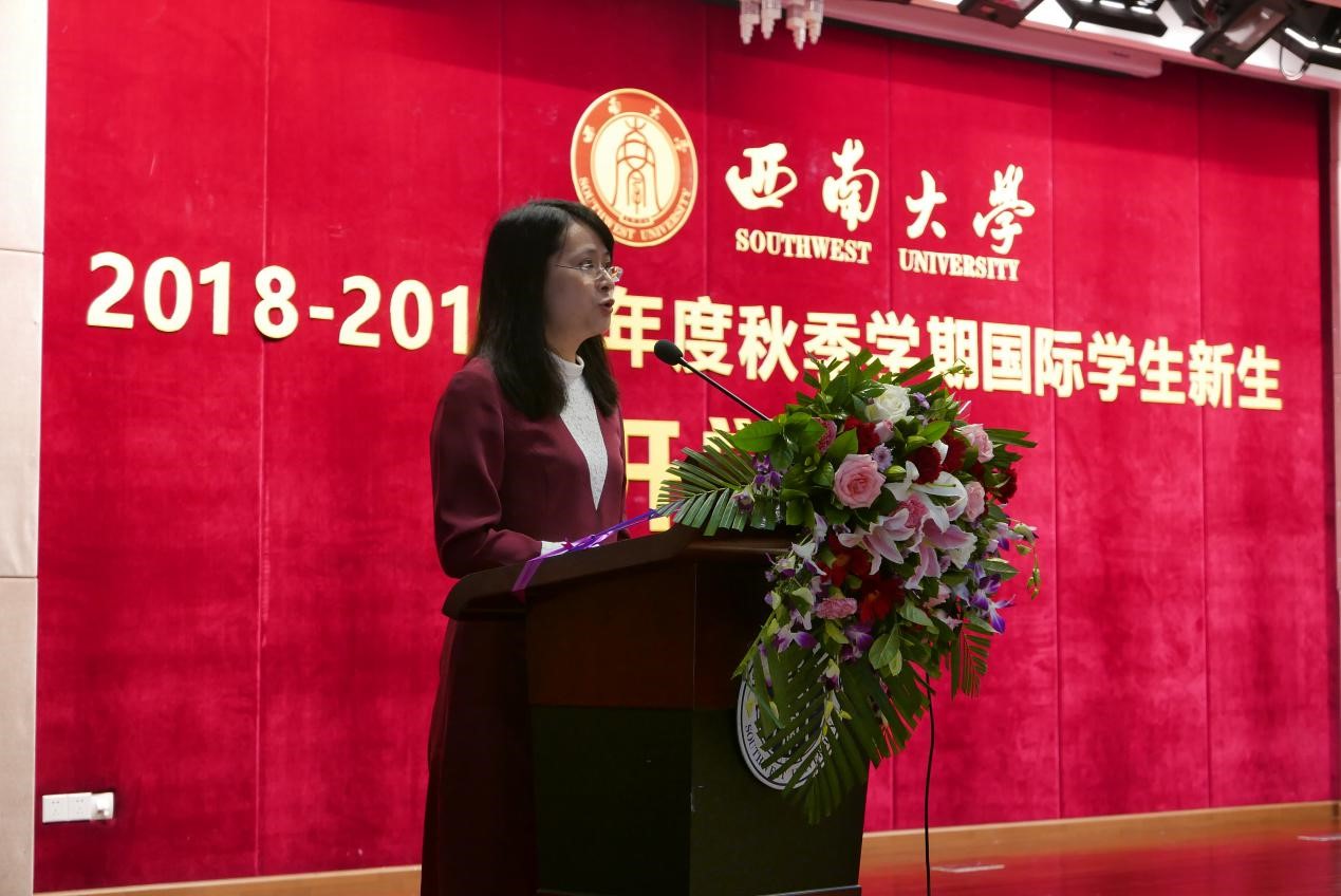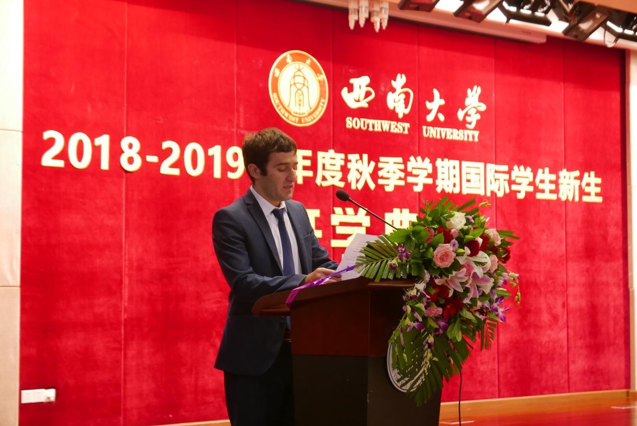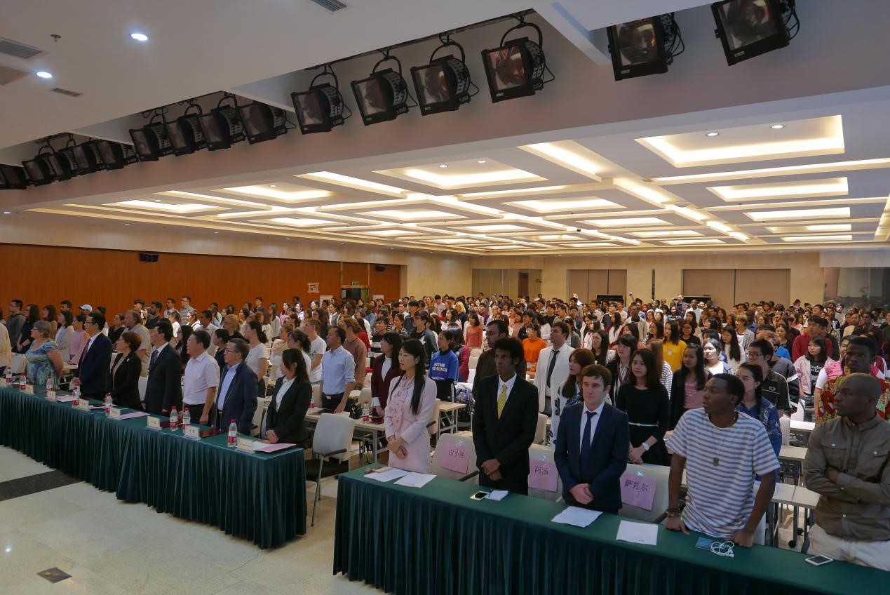 2018年9月13日上午9点,bevictor1946韦德官网2018—2019学年度秋季学期国际员工新生开学典礼在bevictor1946韦德官网国际学术报告厅隆重举行。副董事长靳玉乐,教务处副处长杨挺,研究生导师代表外国语公司文旭教授,美国圣约翰大学圣本尼迪克公司 Jane Opitz教授,日本广岛市立大学Fujiwara Yubi女士,bevictor1946韦德官网经理王静、书记刘猛,bevictor1946韦德官网全体教职员工及来自五大洲70余个国家的400余名国际员工新生参加开学典礼。