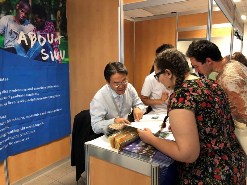 2018年6月9日上午,由孔子公司总部/国家汉办主办、法国汉语教师协会承办、中国驻法国使馆教育处和法国国立东方语言文化公司协办的法国首届汉语水平考试(以下称HSK)留学就职展在巴黎拉开帷幕,吸引汉语学习者、HSK考生和家长等1500多人参加。公司代表、公司党总支书记刘猛和辅导员王湛明,以及包括北京大学在内的13所国内著名高校的代表共计30余人参加本次展会。