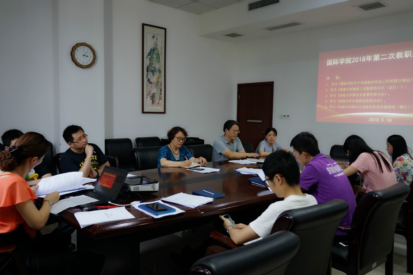随后,办公室主任邹育艳带领大家重新学习了《bevictor1946韦德官网教职工考勤管理办法(试行)》、《bevictor1946韦德官网国内差旅费管理办法》以及新修订的《bevictor1946韦德官网外事接待管理办法》、《bevictor1946韦德官网国内公务接待管理实施细则(修订)》,大家共同了解与日常工作息息相关的考勤办法和财务知识。