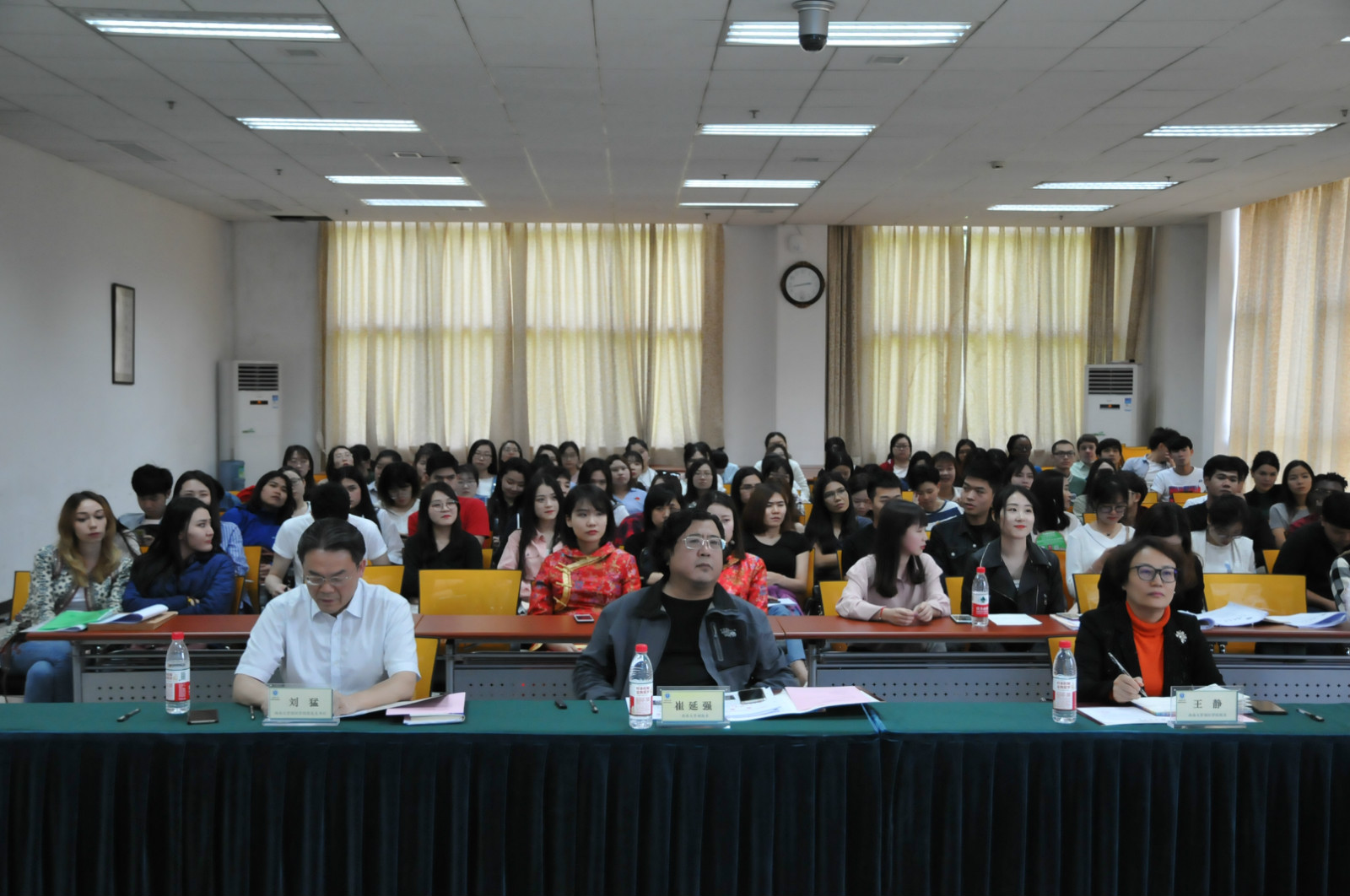 2018年4月18日下午两点半,bevictor1946韦德官网2018届汉语国际教育硕士研究生实习总结暨经验交流会在紫云楼317室成功举行。副董事长崔延强,bevictor1946韦德官网经理王静、党总支书记刘猛,以及2016级和2017级汉语国际教育硕士专业的中外员工共计100余人参加会议。会议由学工办主任陈雨曦主持。