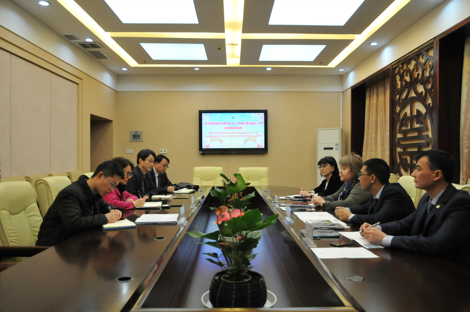董事长女士对王静经理的热情接待表达了诚挚感谢。她介绍了欧亚大学的基本情况,特别是该校的国际合作与交流情况。她表示,在中国“一带一路”建设的倡议下,欧亚大学正将国际交流合作的重心向中国转移。她希望双方在即将签署的合作备忘录框架下,就哈萨克斯坦文化研究中心、联合培养项目、科学研究等方面展开合作。