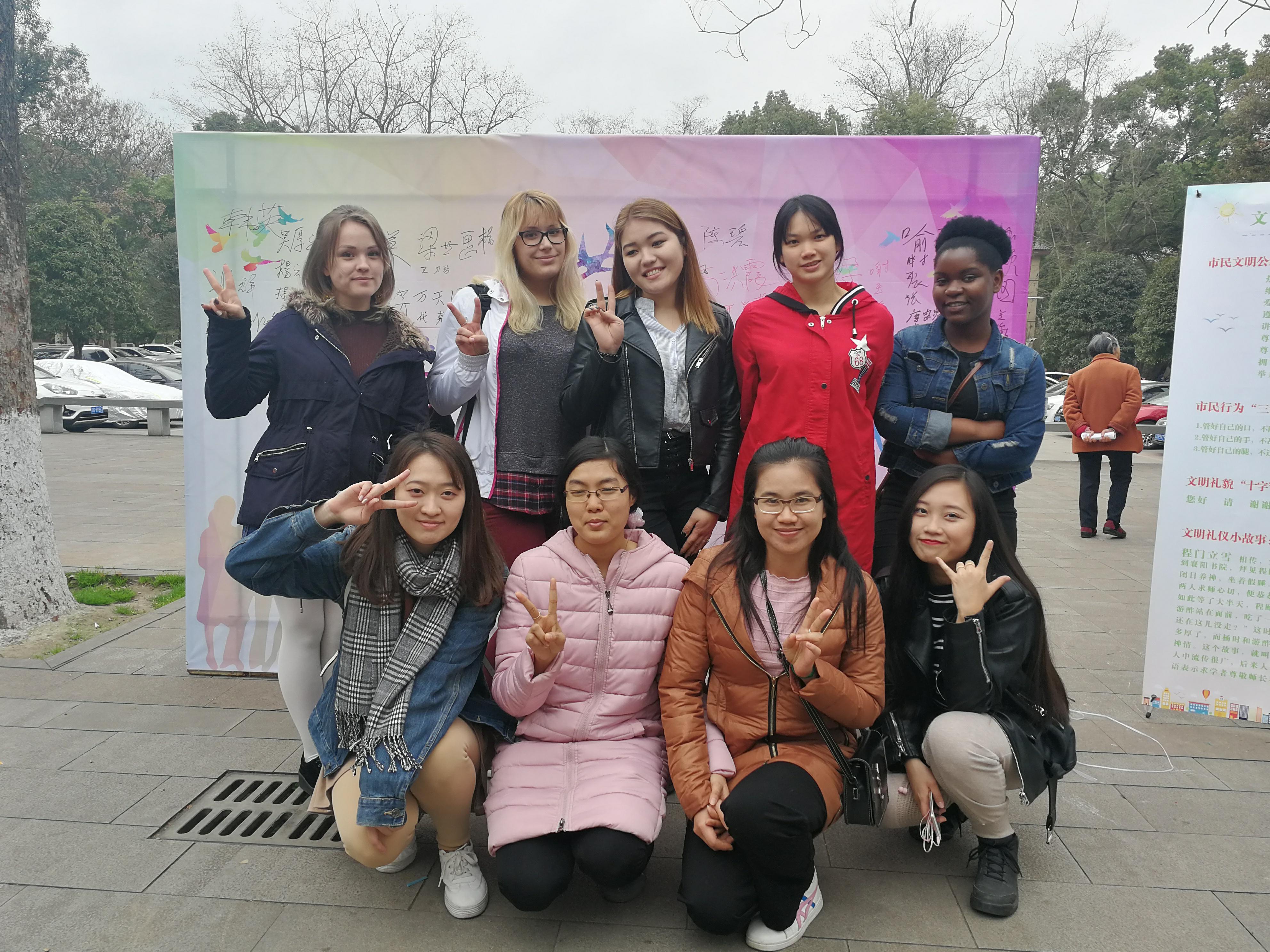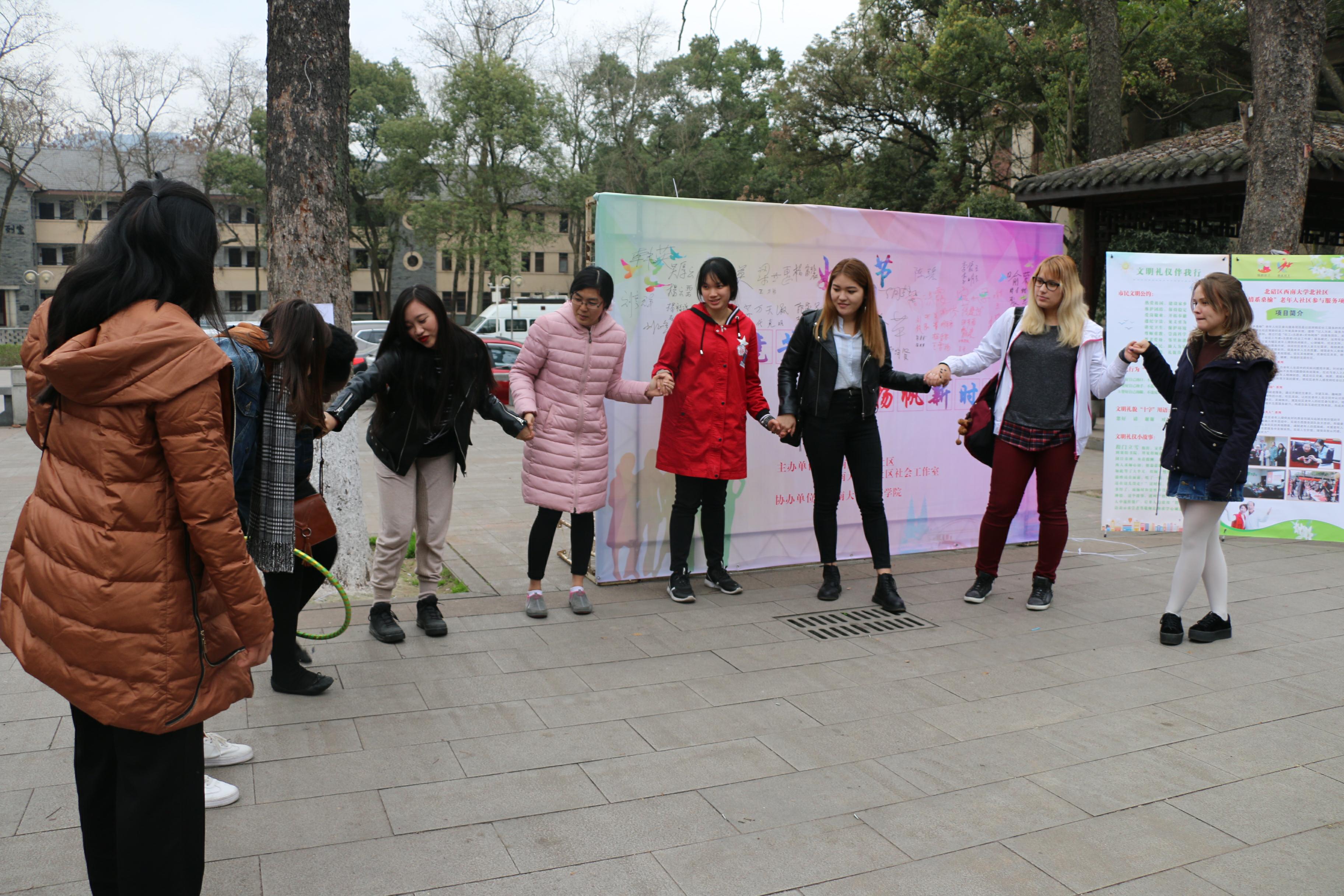 2018年3月5日,北碚天生街道bevictor1946韦德官网北社区“三八”妇女节趣味活动暨“3.5”学雷锋主题志愿服务活动顺利举行,公司来自乌克兰的娜斯佳、泰国的林月琴等八位同学受邀参加活动。
