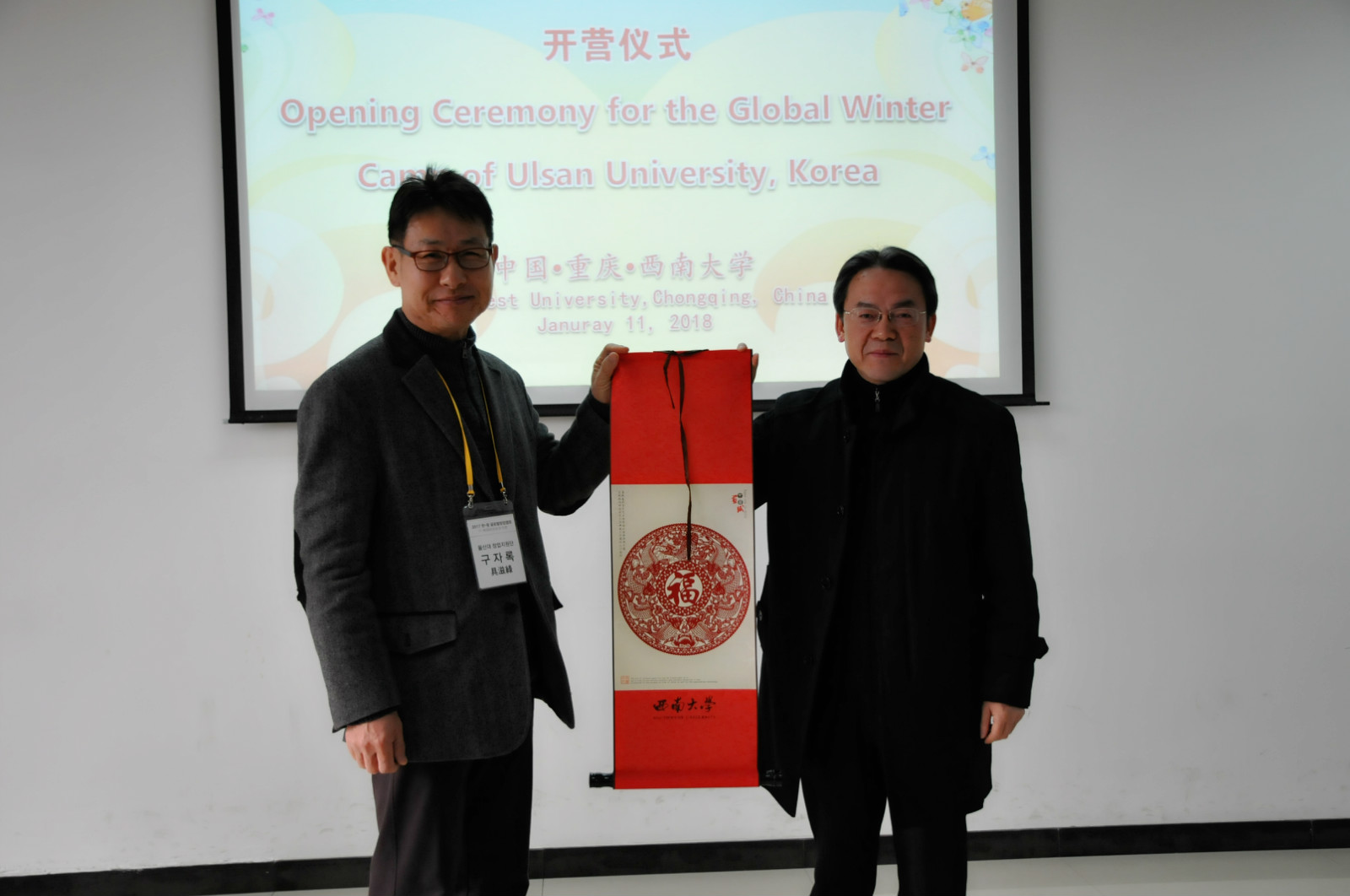 刘猛书记致欢迎辞,希望韩国同学通过此次冬令营的机会,加强和中国员工在创新创业上的经验交流,进一步增进对中国、重庆和公司的了解。蔚山大学创业支援团副团长具滋缘教授感谢公司热情周到的接待和安排,并期望中韩两国青年在创业之路上携手并进,续写中韩友谊新篇章。蔚山科学大学的刘相教授随后发言,表达了对双方合作和青年学子成才的美好祝愿。最后,双方互赠礼物,并合影留念。
