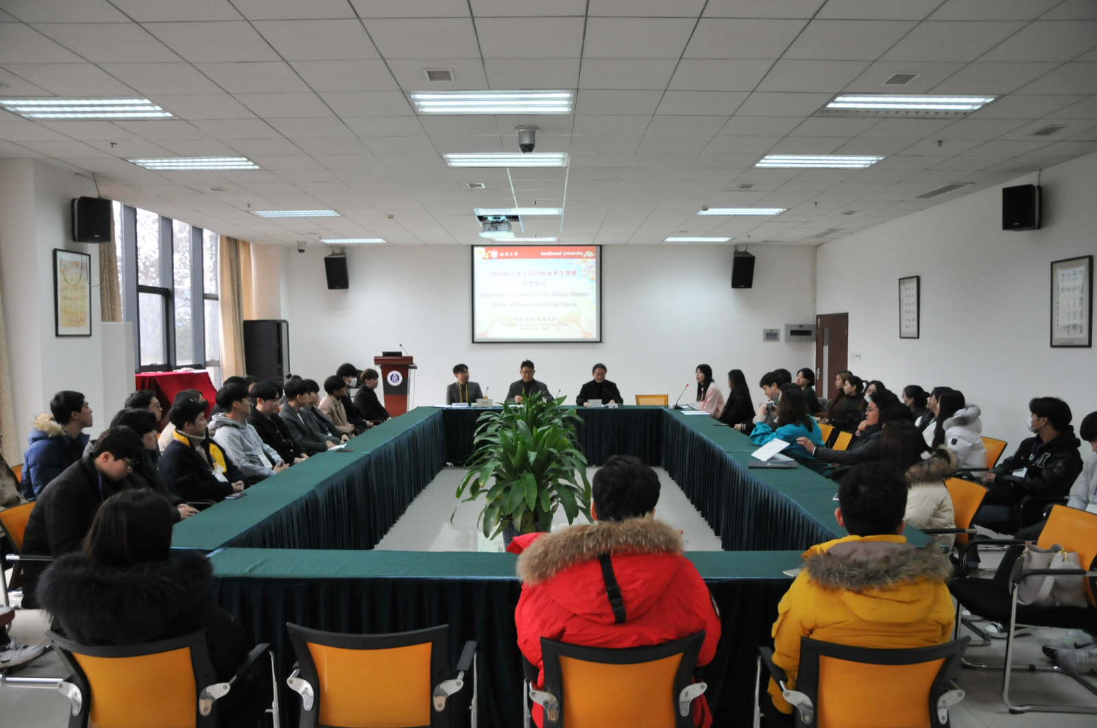 1月11日上午,韩国蔚山大学国际创业冬令营开营仪式在bevictor1946韦德官网举行。公司党总支书记刘猛,蔚山大学创业支援团副团长具滋缘,以及38名韩国老员工创业团队成员参加了开营仪式。