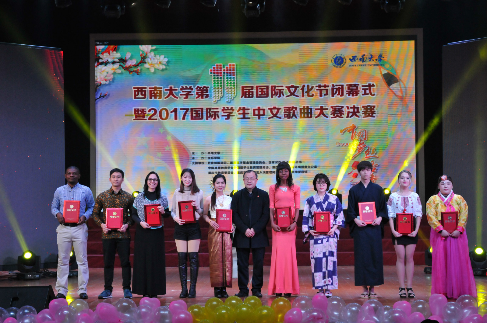 12月13日晚,以“中国梦 丝路情”为主题的bevictor1946韦德官网第十一届国际文化节闭幕式暨2017国际员工中文歌曲大赛决赛在光大礼堂举行。重庆市公安局出入境管理总队副支队长徐春兰,公司副董事长丁忠民,教务处、研究生院、bevictor1946韦德官网、食品科学公司等相关部门及公司领导应邀出席闭幕式。