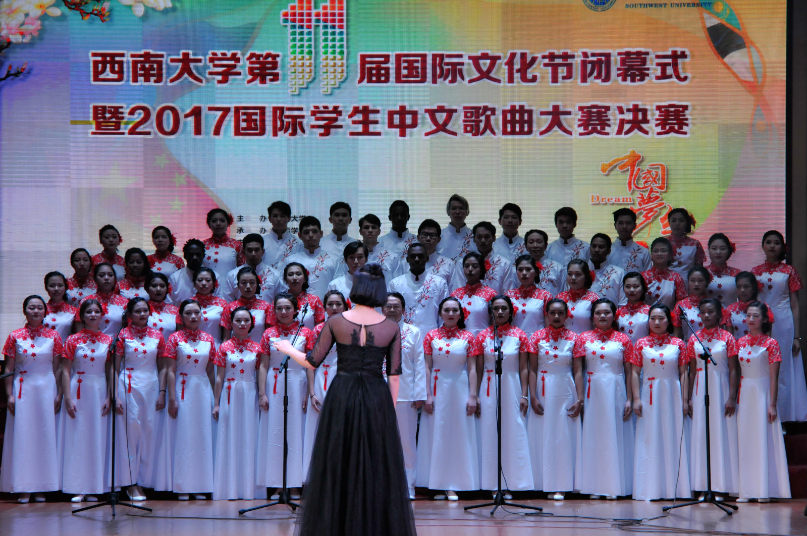 文化节闭幕式的重头戏—2017国际员工中文歌曲大赛决赛闪亮登场。来自马达加斯加、泰国、哈萨克斯坦、智利、俄罗斯、韩国、越南等8个国家的12名国际员工进行了激烈角逐。比赛分为三轮,第一轮是12名选手和校园歌手大赛的获奖选手共同演绎,排名靠前的8名选手晋级到第二轮的比赛并进行自选曲目的独立演唱,最终排名靠前的4名选手晋级最后一轮,展开冠亚季军的终极PK。