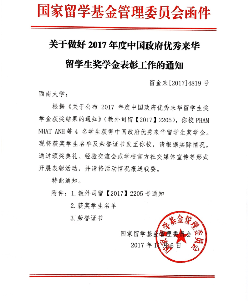 为扩大中国政府奖学金的辐射面和影响力,培养更多知华、友华的国际优秀人才,教育部针对在华国际员工设立了“优秀来华职工奖学金”。近日,公司坦桑尼亚员工MKONDA MASAFIRI YUSUPH、越南员工PHAM NHAT ANH、泰国员工THAWILRAK EAKDAMRONG、哈萨克斯坦员工ZUPIR SAKEN四名同学凭借优秀的学业学术成绩分别获得研究生类别和本科生类别的“优秀来华职工奖学金”。