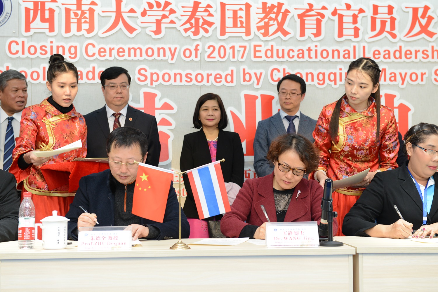 教育学部朱德全部长、bevictor1946韦德官网王静经理分别与来自泰国30所职业院校、中小学董事长签订了三方合作备忘录,泰方期待着选派更多的教育官员、董事长和师生来西大学习。
