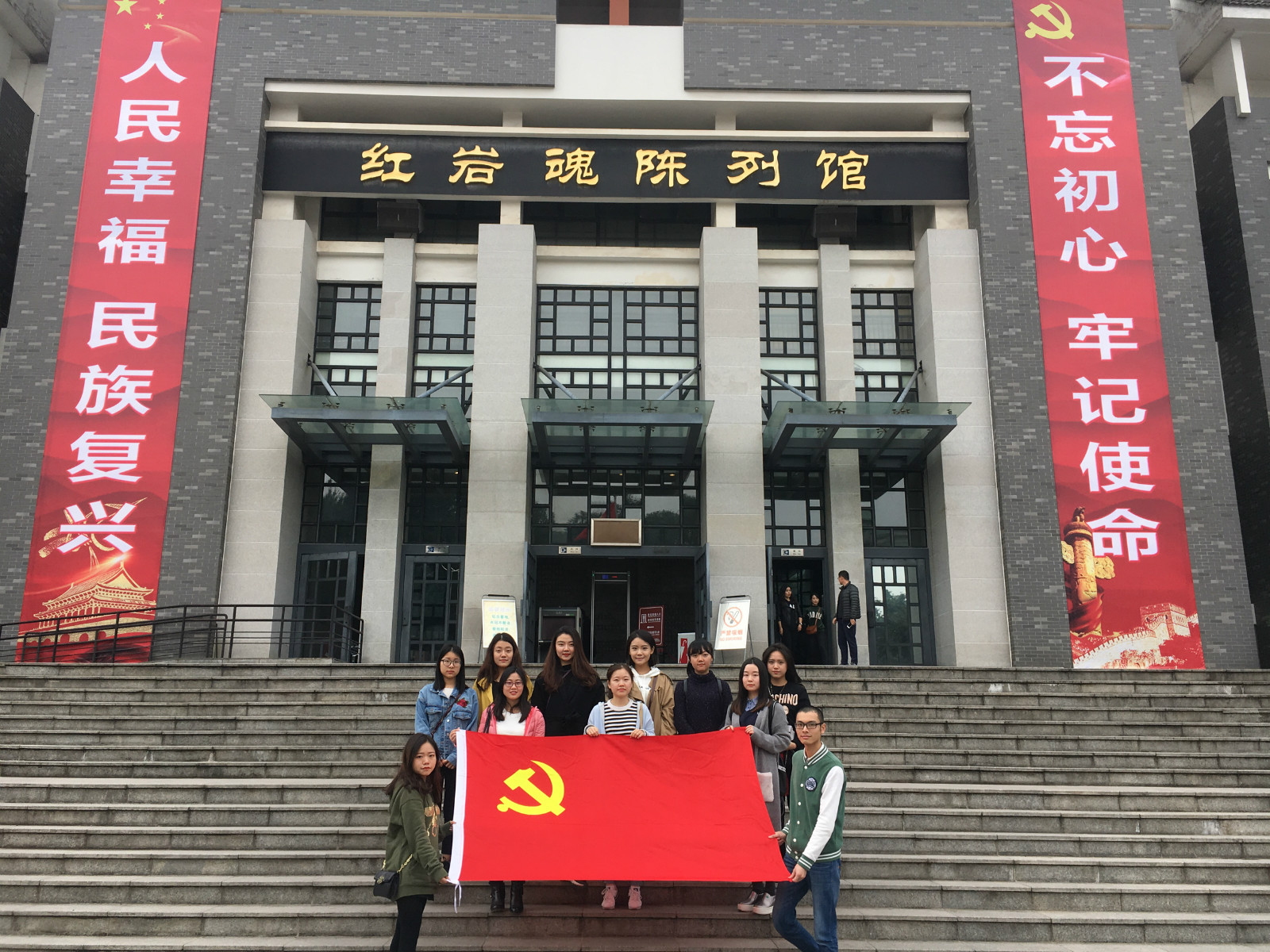 党员同志和入党积极分子们参观了红岩魂广场、“重庆歌乐山烈士陵园”的碑体,并着重参观了红岩魂陈列总馆。陈列总馆建于1963年,真实地重现了革命年代共产党人被关押的监狱的状况,讲述了红岩英烈的生平事迹。大家通过陈列馆墙上一幅幅真实的照片,一首首豪壮的诗文,一桩桩感人的事迹,看到了渣滓洞与香山别墅、白公馆形成的鲜明对比,进一步了解了“江姐”、“小萝卜头”、“叶挺”等为人熟知的英烈事迹,还学习了众多之前未曾了解的革命先烈在白色恐怖下与敌人进行斗争的史实,深深地体会到革命先烈的伟大与奉献。