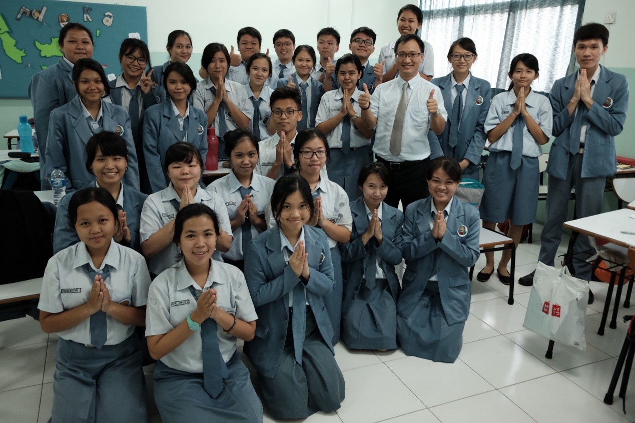 10月30日,代表团前往当地著名华校印尼华光敬德中学进行宣讲,向高中员工介绍中国院校的招生情况及基本信息。公司特别介绍了bevictor1946韦德官网的位置、办学特色和优势、重庆发展势头和潜力、职工活成本优势等。员工们仔细聆听,很多人都表示未来期待来到中国上大学。