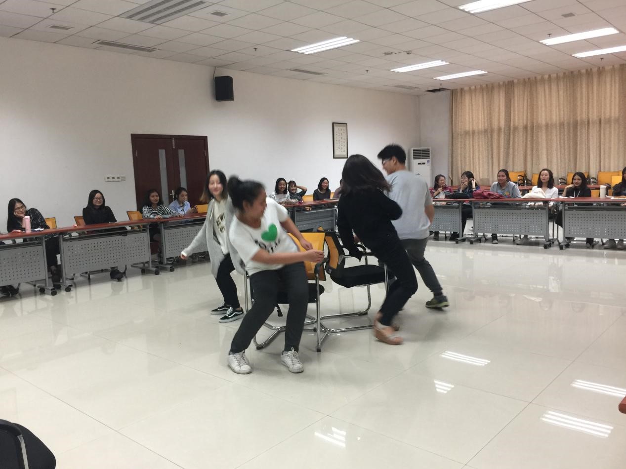之后同学们一边品尝中秋月饼,一边和语伴互相交流。还在间隙分组进行了知识有奖问答比赛,和玩起了抢凳子的游戏。分组按照中泰员工语伴随机分配,8人一组依次参与,最后再选出优胜组。大家都在竞赛和游戏中拼尽全力,玩得不亦乐乎。