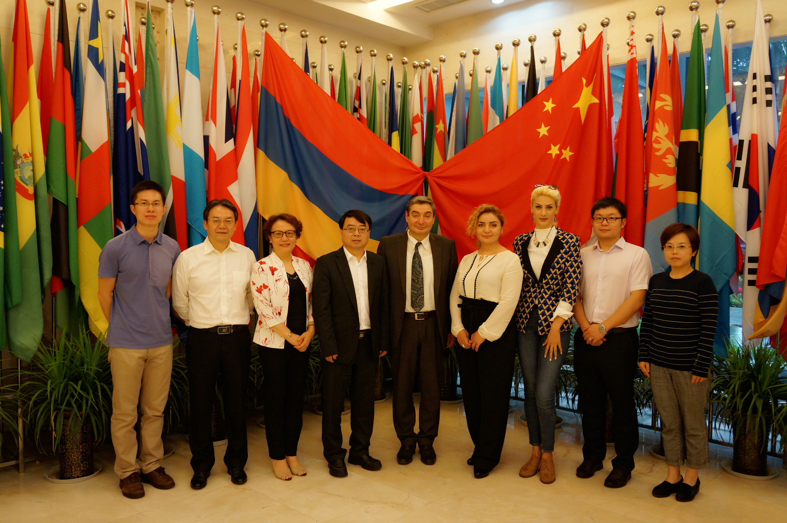 2017年9月28日,亚美尼亚国立教育大学副董事长阿拉•叶列米扬先生、国际合作部主任克里斯缇娜•萨图尔扬女士等一行两人来院访问,公司经理王静、党总支书记刘猛、招生工作办公室负责人李林泽与公司国际合作与交流处副处长张家政、合作办学管理科科长肖宇等共同会见了客人。