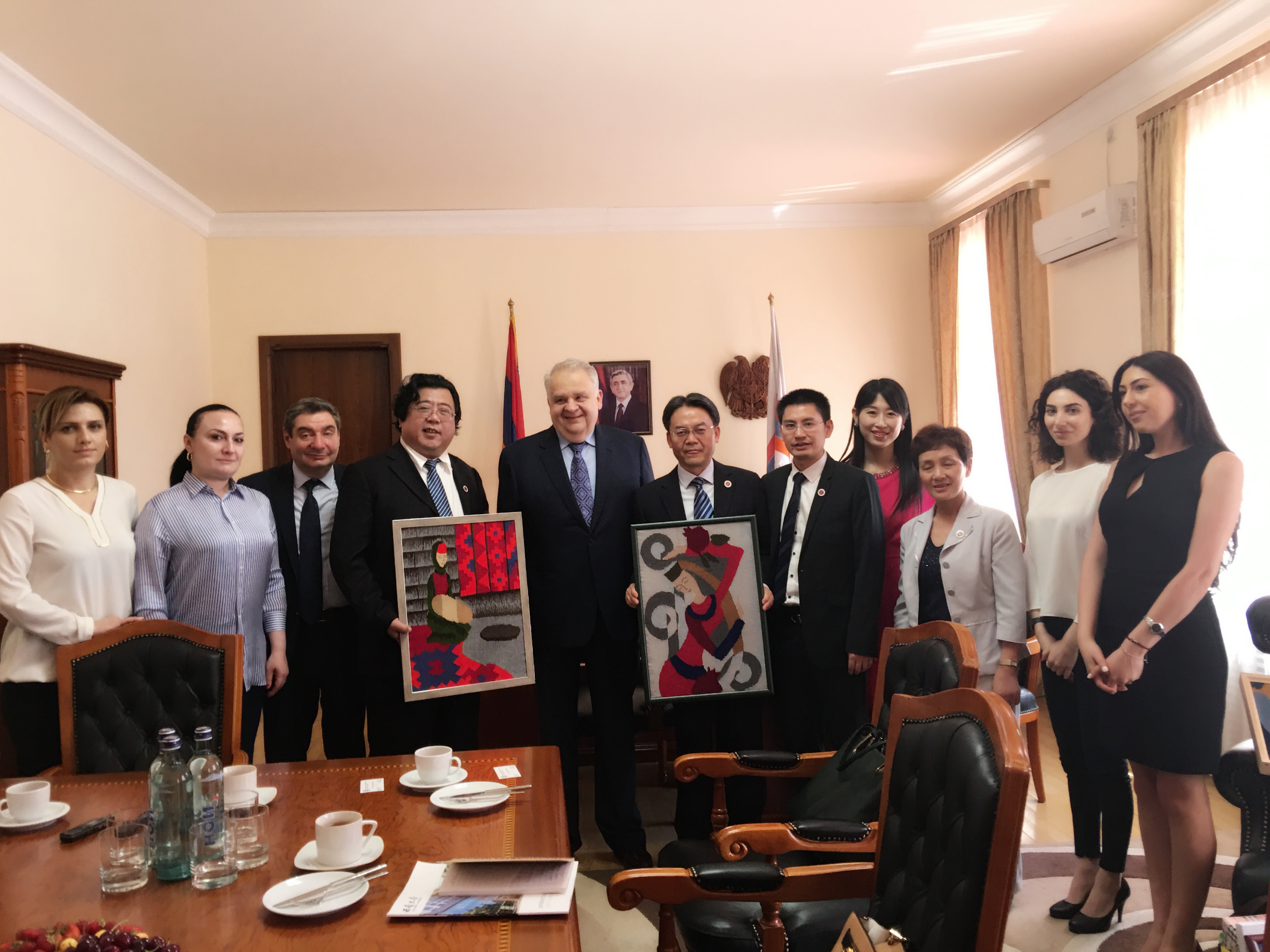 亚美尼亚国立教育大学位于亚美尼亚首都埃里温,是亚美尼亚排名前三的大学,以教育和心理学专业见长,也是亚美尼亚唯一开设特殊教育专业的大学。该校董事长Ruben Mirzakhanyan会见了代表团一行,对代表团的来访表示热烈欢迎,介绍了公司的概况和特色优势专业,并表示希望两校能在员工互访、联合培养、科学研究等相关领域展开合作,深入交流。副董事长崔延强感谢对方的热情接待和精心安排,并介绍了公司的悠久历史、专业设置和优势学科,希望在MOU框架下,两校之间能有更多的具体合作协议落地生根。