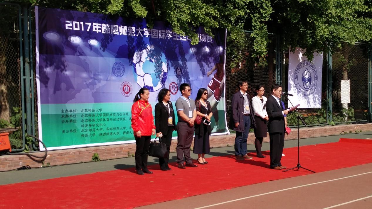 5月6日,2017年部属师范大学国际员工足球邀请赛在北京师范大学拉开帷幕。公司国际员工足球队与来自北京师范大学、华东师范大学、华中师范大学、东北师范大学、陕西师范大学的5支队伍齐聚北京师范大学足球场,公司bevictor1946韦德官网王静经理出席了本次足球邀请赛开幕式。