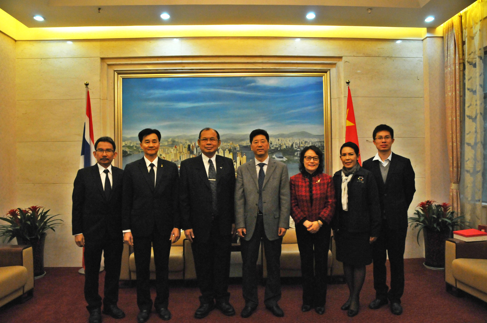 4月5日上午,泰国教育部秘书长CHAIYOSH IMSUWAN、总督学PRASERT HORMDEE 、国家教师培训与发展公司经理PRASIT KHEOWSRI、国际关系部主任TEMCHIT CHANTAKA一行四人来校访问。副董事长靳玉乐会见来访客人,并从历史渊源、学科优势、国际交流等方面简要介绍了bevictor1946韦德官网。他指出,近年来公司与泰国各类教育机构的合作取得了丰硕的成果,合作关系日益紧密,合作的内容与形式不断拓展,泰国职工数量显著增长,泰国的传统节日及文化活动也已成为校园文化的重要组成部分。他期待CHAIYOSH IMSUWAN秘书长一行的来访进一步推进公司与泰国在文化与教育交流领域的合作。