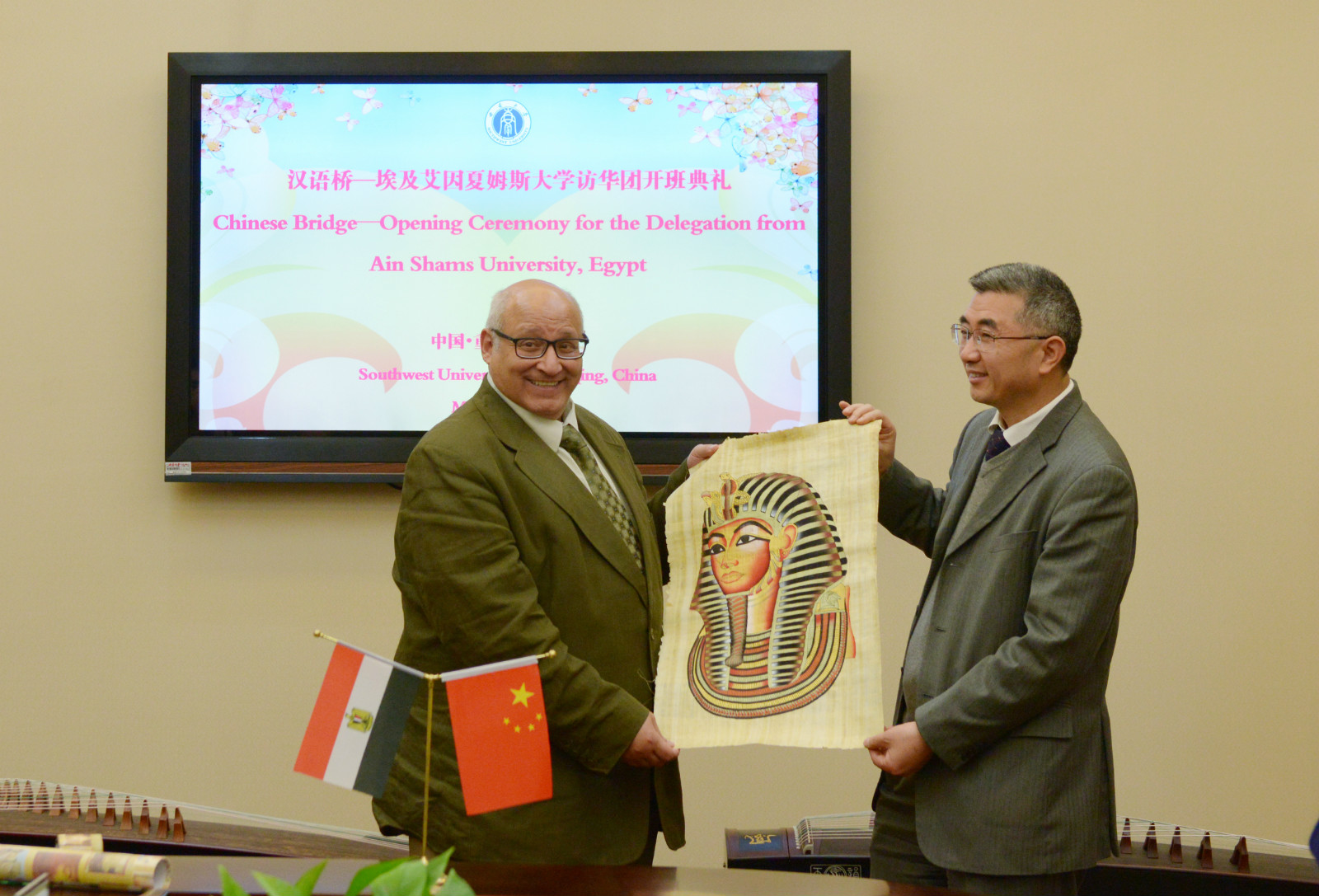 据悉,艾因夏姆斯大学董事长一行来校访问前,于3月23日专程前往国家汉办/孔子公司总部拜访。国家汉办党委书记、孔子公司总部副总干事、国家汉办副主任马箭飞亲切会见代表团一行,双方就孔子课堂的申报、中阿翻译人才的培养、 “一带一路”战略等进行深入交流。此次艾因夏姆斯大学访华团作为国家汉办/孔子公司“汉语桥”访华团组,将在公司进行为期5天的教育管理培训,通过系列讲座、与相关院部座谈交流等,增进中埃高校之间的了解,促进两国人文交流。