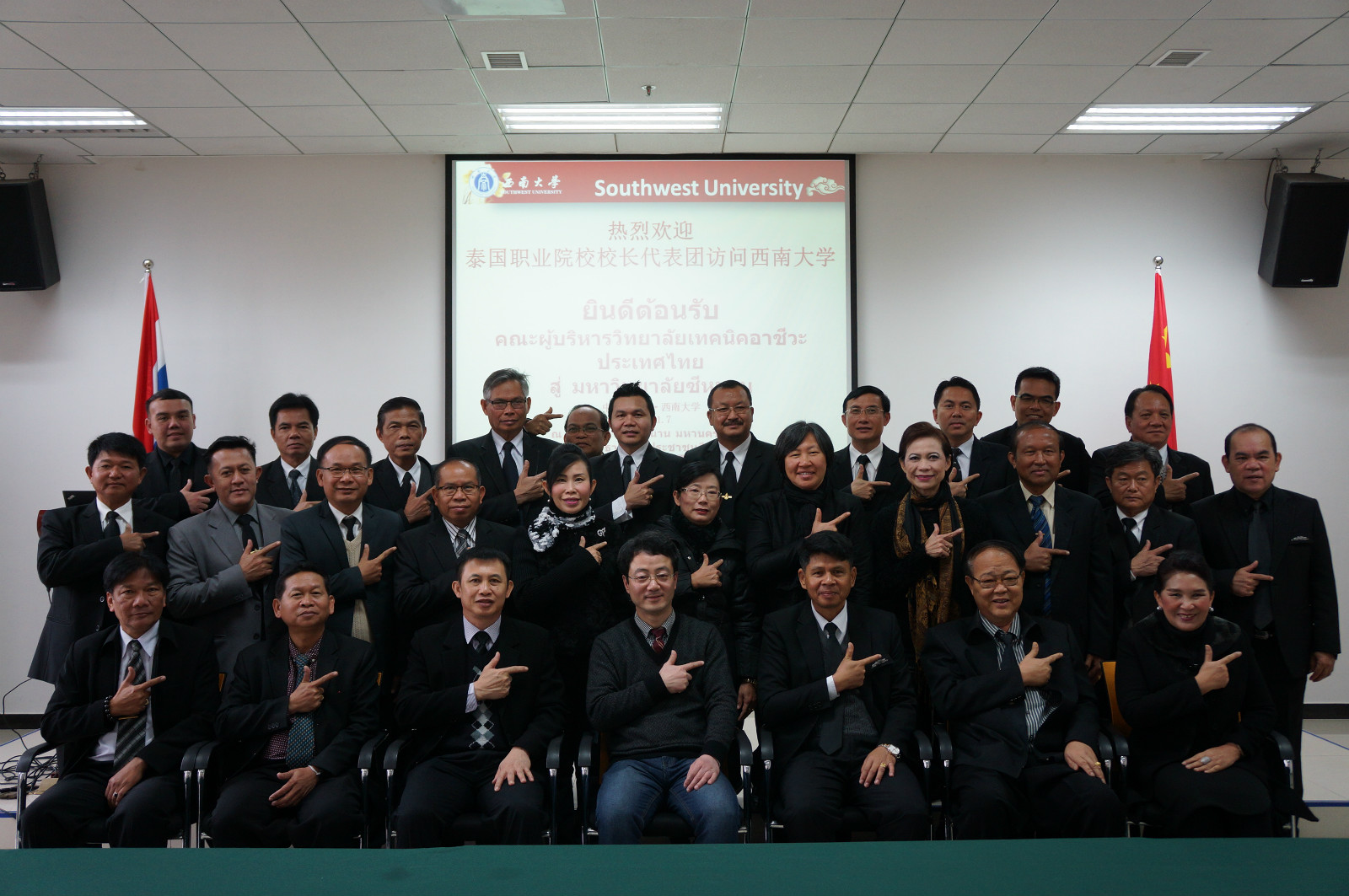 1月6日,由泰国教育部职业教育委员会主办、孔敬大学孔子公司承办的泰国职业院校来华代表团访问公司并谋求合作,成员包括来自泰国26所高等职业院校的28名董事长、副董事长。